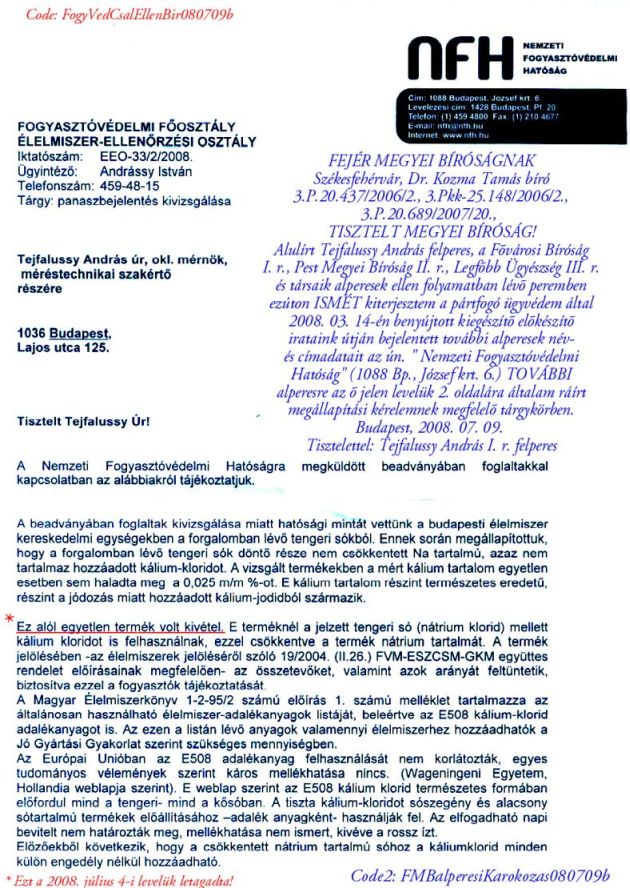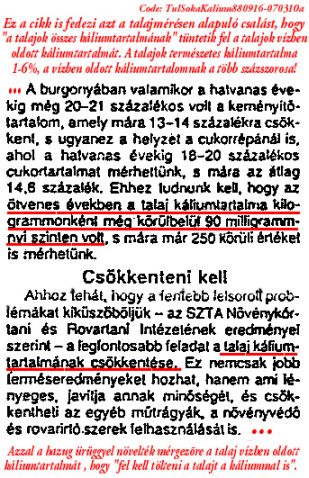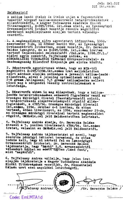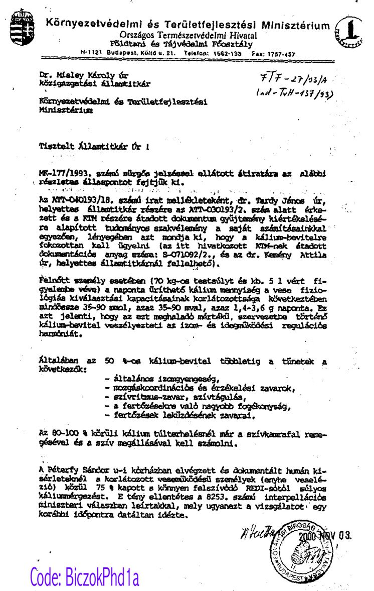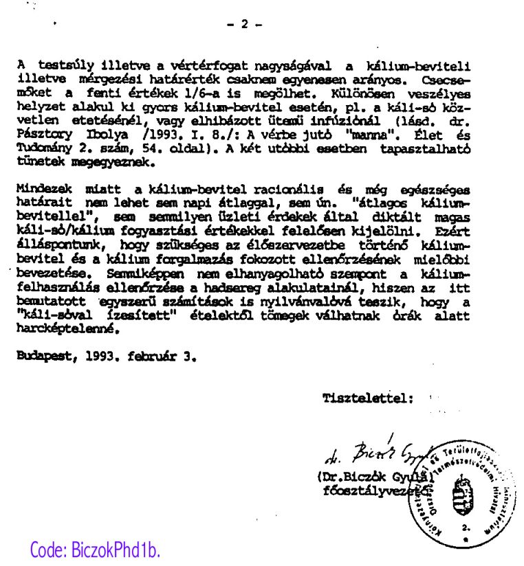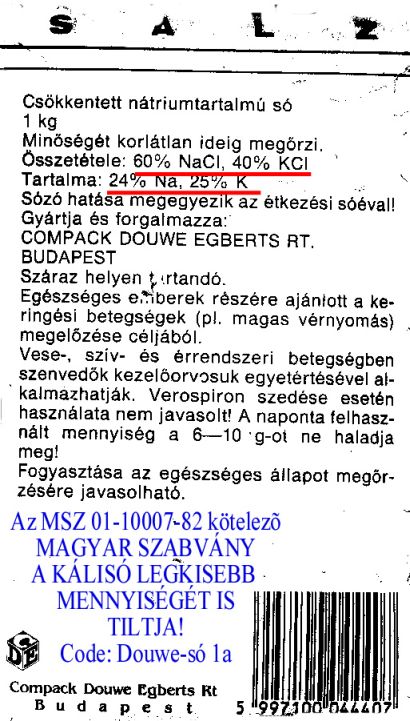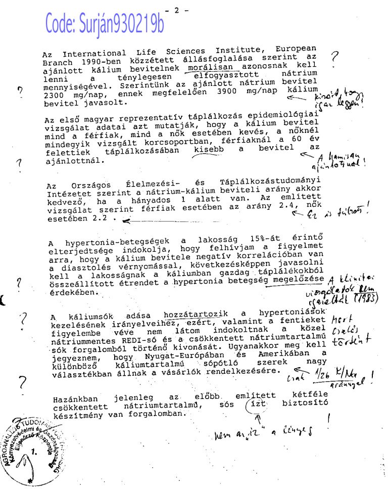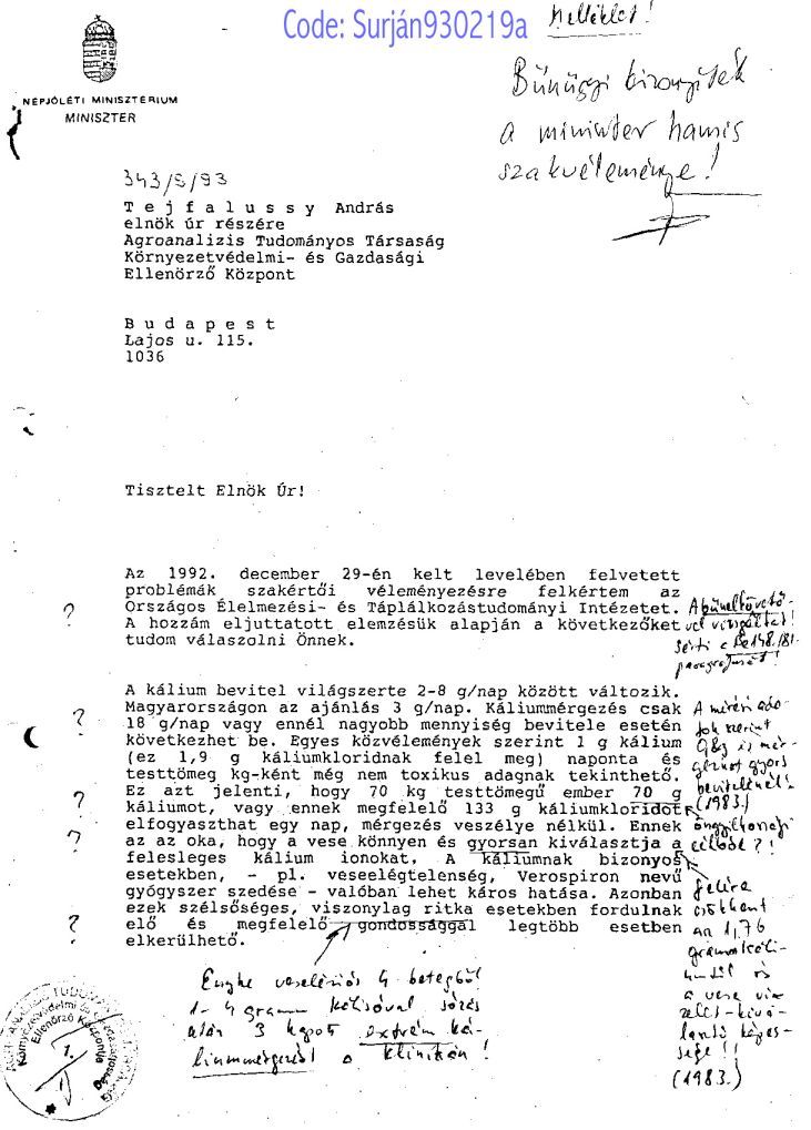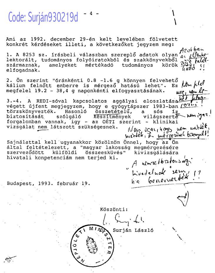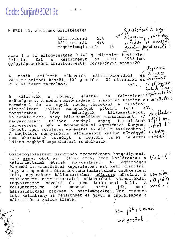 SURJÁN LÁSZLÓ 1992. december 12-én megszavaztatta az Országgyűléssel, hogy a káliummal etetés 18-70 gramm/fő/nap közötti dózissal sem árthat a magyaroknak (8253/1992. sz. miniszteri válasz, dr. Kovács Pál és dr. Papp János képviselők interpellációjára) és azóta kiterjedten kálisót és kálium-citrátot és más káliumtartalmú vegyületeket alkalmaznak a konyhasó helyett és pl. kálium-aluminium-szulfátot (timsót) stb. is, dózis korlátozás nélkül engednek ételek készítésére használni.