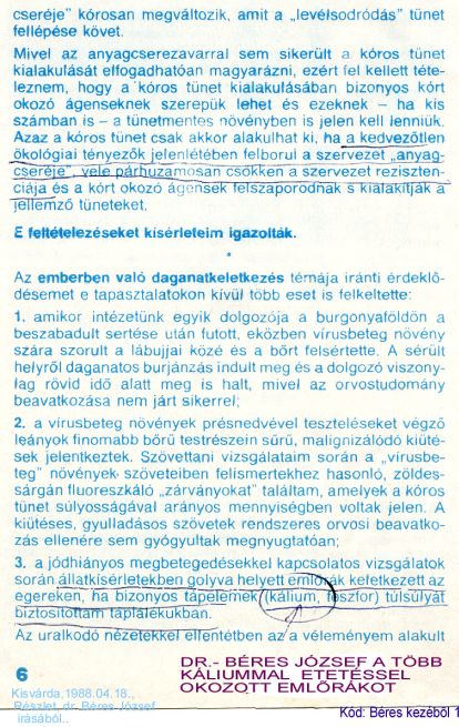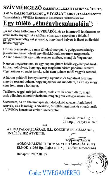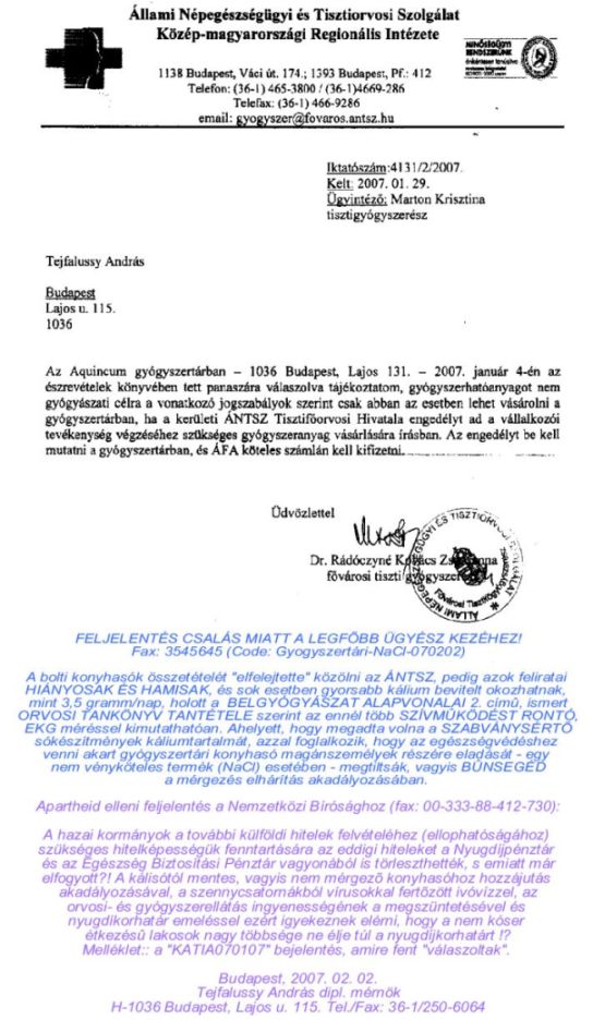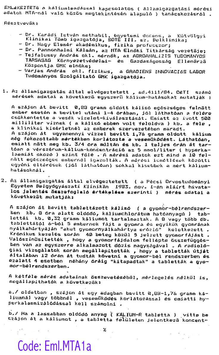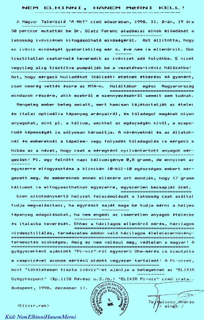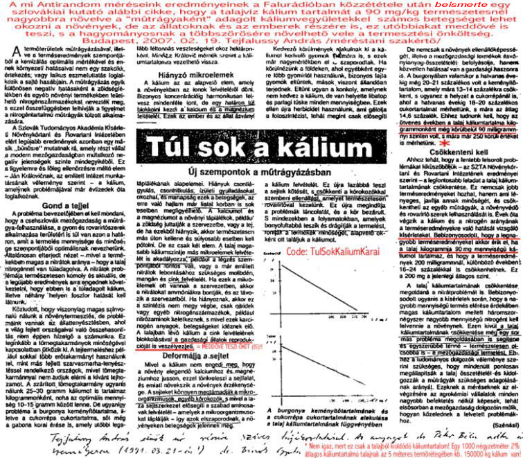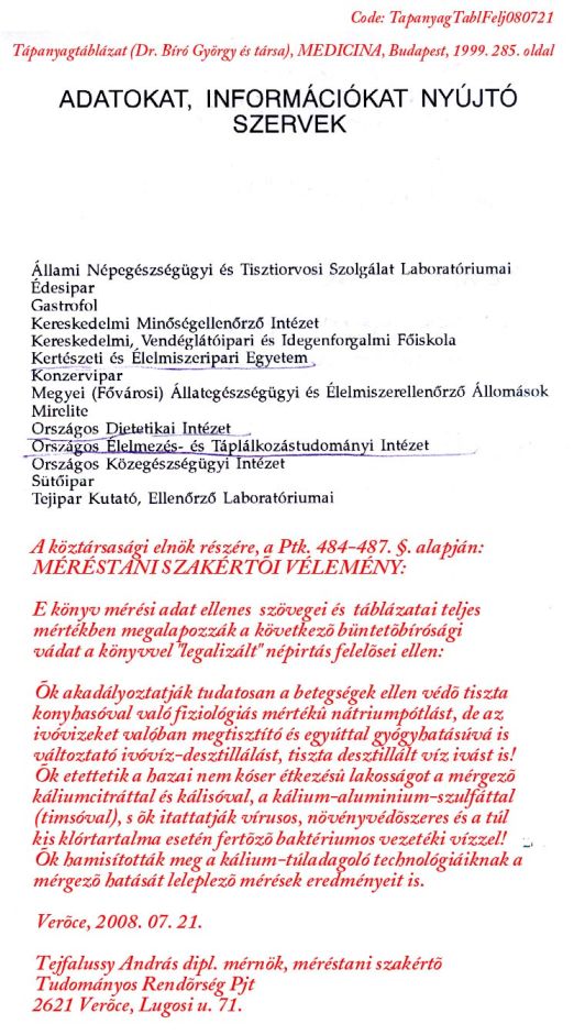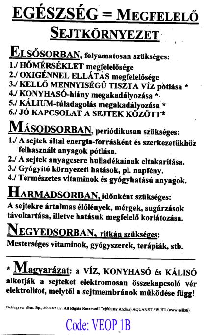 Közismert, hogy ezeket a problémákat más okokra vezetik vissza, miközben ezt a két fő okot nem csak elhallgatják, de ellenkező hatásúnak tüntetik fel. Az élettani optimum szerinti fiziológiás sózást, a vér elektrolitnak a nátrium-, kálium- és víz arányának megfelelő étkezést elavultnak hazudják, holott annak helyességét a tengervíz, a magzatvíz és a vér és a fiziológiás infúziós Ringer oldat azonos nátrium és kálium aránya is egyértelműen igazolja, de az is, hogy kisebb kálium túlfogyasztás esetén is torzul az EKG, vagyis romlik a szívműködés. A fenti könyvről készített másolatokat, s a többi fent említett mérési- és tankönyvi dokumentumot is le lehet hívni, ki lehet nyomtatni az internetrõl, amihez a Google keresőbe a mellekvesekerges szót kell beírni.