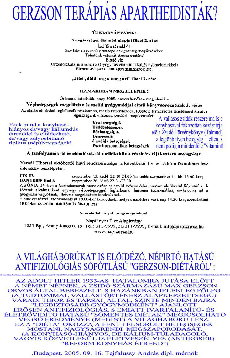 Kik, hogyan, mióta, s milyen célból irtják manapság is millió számra a magyarokat orvosi és természetgyógyászi csalásokkal.