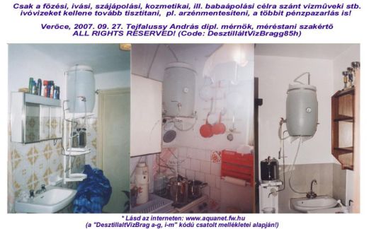 Talmud: (A böjtnap. 10 a. lap.) Izrael országa esővizet iszik (desztillált vizet), az egész világ pedig a maradékot. ..... hasonlókép egy olyan emberhez, aki sajtot készít s az élvezhető részt kiválasztja, a hasznavehetetlent pedig otthagyja. (Baba m. 107b.) Betegség alatt az epét kell érteni, még pedig azért, mert 83 betegségnek van kitéve. ....De mindezt elűzi egy (fiziológiás szükséglet szerint tiszta konyhasóval sózott) sóskenyér és rá egy korsó (tiszta desztillált) víz.