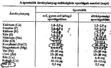 Erős izzadással együtt járó fizikai munka, sport esetében napi 15 gramm nátriumnak a pótlás is élettani szükséglet lehet. Ennyi nátrium 33 gramm konyhasóban van.