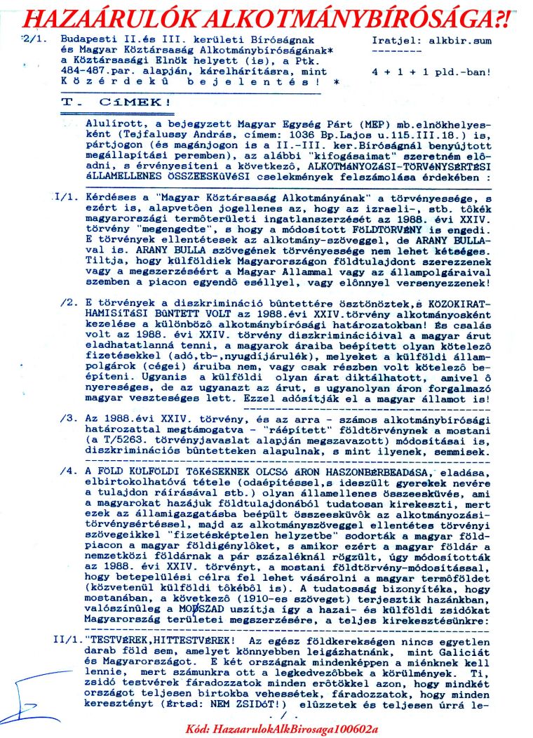 Fõtéma: MAGYARORSZÁGI HAZAÁRULÓK ALKOTMÁNYBÍRÓSÁGA?