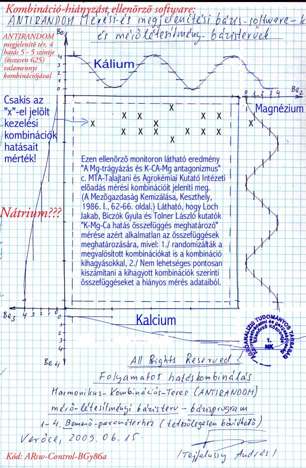 Fõtéma: HATÁSKOMBINÁCIÓS MÉRÉSEK HIÁNYOSSÁGAIT MEGJELENÍTÕ ANTIRANDOM BÁZIS-SOFTWARE ÉS ALKALMAZÁSAI, A "RANDOMIZÁLÁSOS" ÁLELLENÕRZÉSI, ÁLOPTIMALIZÁLÁSI "TÖBBVÁLTOZÓS" ÁLMÉRÉSEK ÉS STATISZTIKAI ÁLKIÉRTÉKELÉSEK ÉSZREVÉTELÉHEZ
