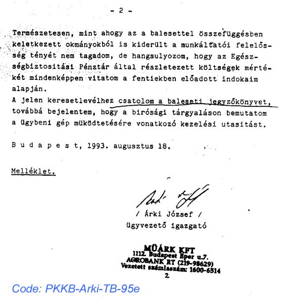 2./ Horváth Péter volt jelen a balesetnél, õ állította le a gépet is, Hart (József) ott sem volt.