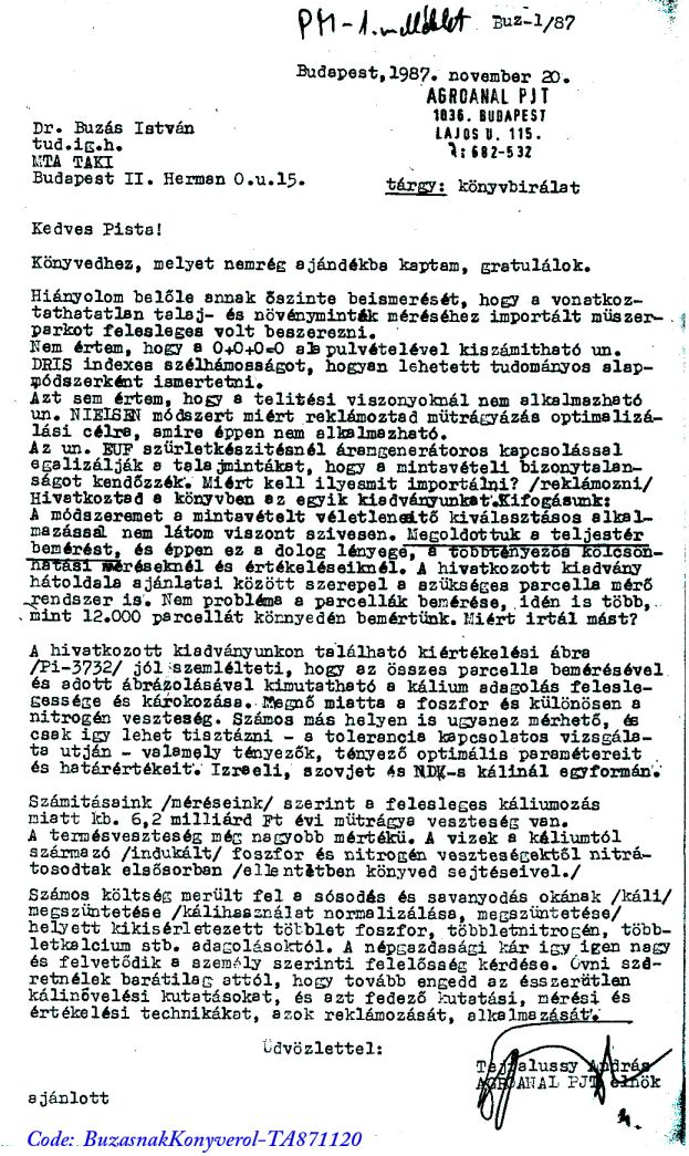 Fõtéma: Tejfalussy Andrásnak - az általa feltalált többtényezõs kölcsönhatás-vizsgálati antirandom-gradiens software-en alapuló - közérdekû bejelentése és -javaslata Dr. Sólyom László köztársasági elnökhöz (is) a magyarországi agrokémiai kalibrálási hiányosságok és azok miatti gazdasági és egészségi károkozások megszüntetésének lehetõségérõl és sürgõs szükségességérõl.