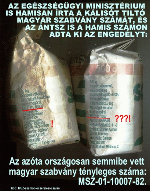 3./ TIMSÓ, KÁLISÓ STB. KÁLIUMVEGYÜLETEKKEL MÉRGEZIK AZ ÉLELMISZEREKET (a kálium túladagolás is életrövidítõ + ivartalanító = népirtó hatású!)