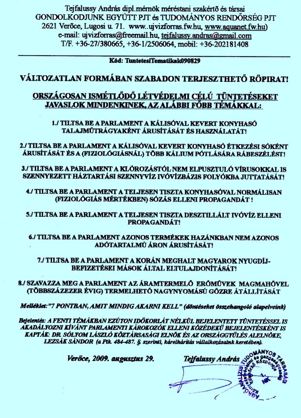 (és ezzel a bizonyítékokat bemutató www.aquanet.fw.hu