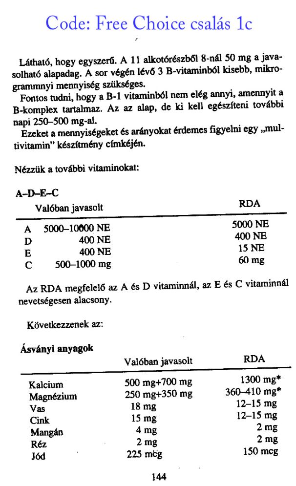 Például az RDA hamisításokkal mások által folytatott egészségkárosításokat a "Cenzórázott egészség" címú könyvében "mindenkinél bátrabban leleplezõ" dr. Lenkei Gábor orvos a fiziológiás optimumnál sokszorosan nagyobb kálium mennyiséget tüntet fel kálium RDA-nak (4,5 gramm/nap kálium bevitelt).
