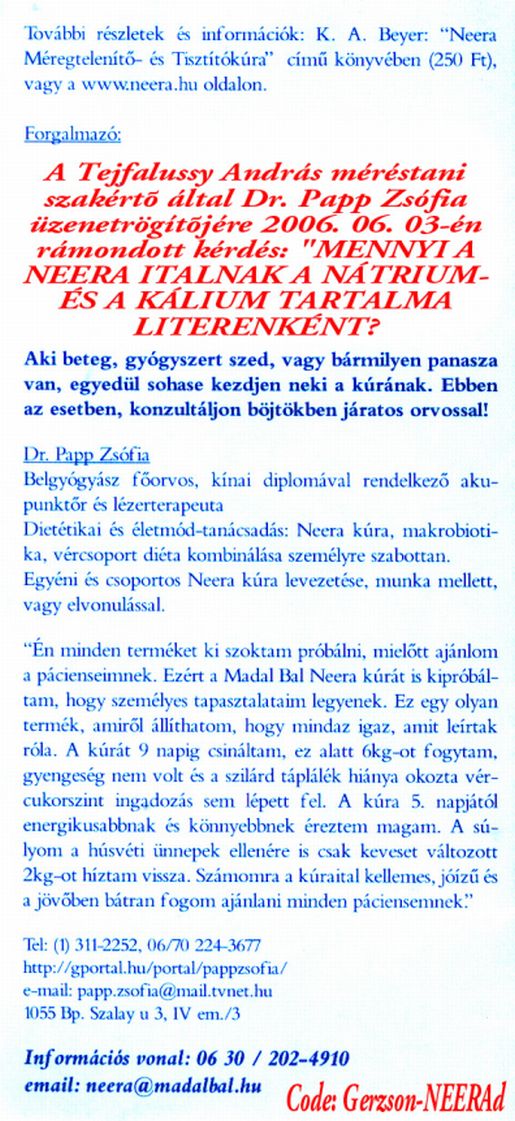 A fiziológiás élettani optimumnak megfelelõ nátrium- és kálium- és víz pótlási arány jól ismertaz orvosok elõtt, de csak azokat az orvosokat engedik a témáról publikáni az átlagorvos és a magyar lakosság által is olbvgasott lapokban, pldául az Orvosi Hetilapban, akik a magyar nem vallásos zsidó lakosság elleni népirtás céljainak megfelelõ szövegeket adnak elõ, mindig "megtalálják az apartheid végrehajtásához megfelelõ orvosokat"!