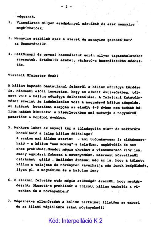 Az ÚJ TUDOMÁNYOS OPTIMUM ELLENÕRZÕ ANTIRANDOM MÉRÉSEK 1979-TÕL KEZDÕDÕEN ALKALMAZÁSA LEHETÕVÉ TETTE ANNAK FELISMERÉSÉT, HOGY A KÁLISÓ A NÖVÉNYEKET IS MÉRGEZI TALAJBA ADAGOLÁSA ESETÉN, S A NÖVÉNYEKET MÉRGEZÕVÉ IS TESZI AZ ÁLLATOK ÉS AZ EMBEREK SZÁMÁRA.
