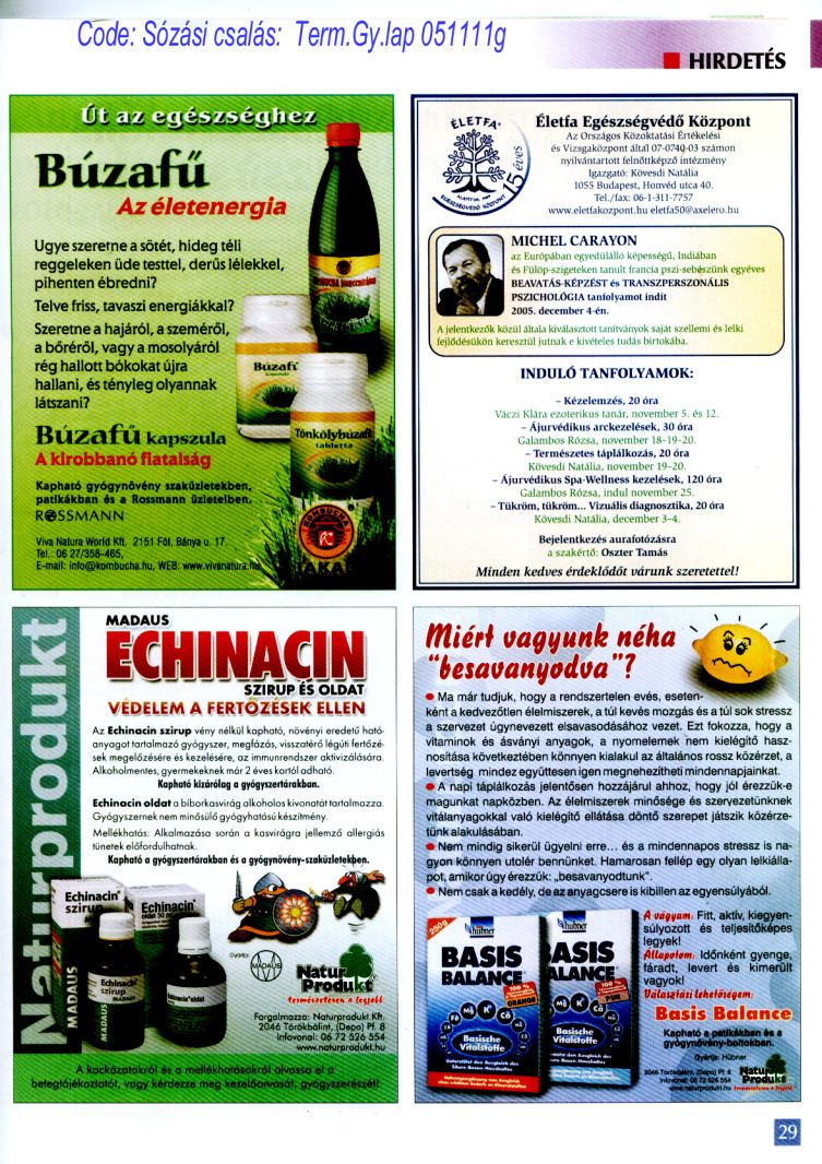 Budapest, Lajos u. 115. Hungary 1036 Telefon/fax: 36-1/250-6064, 36-27-380-665