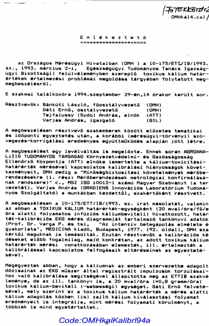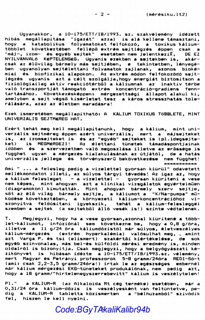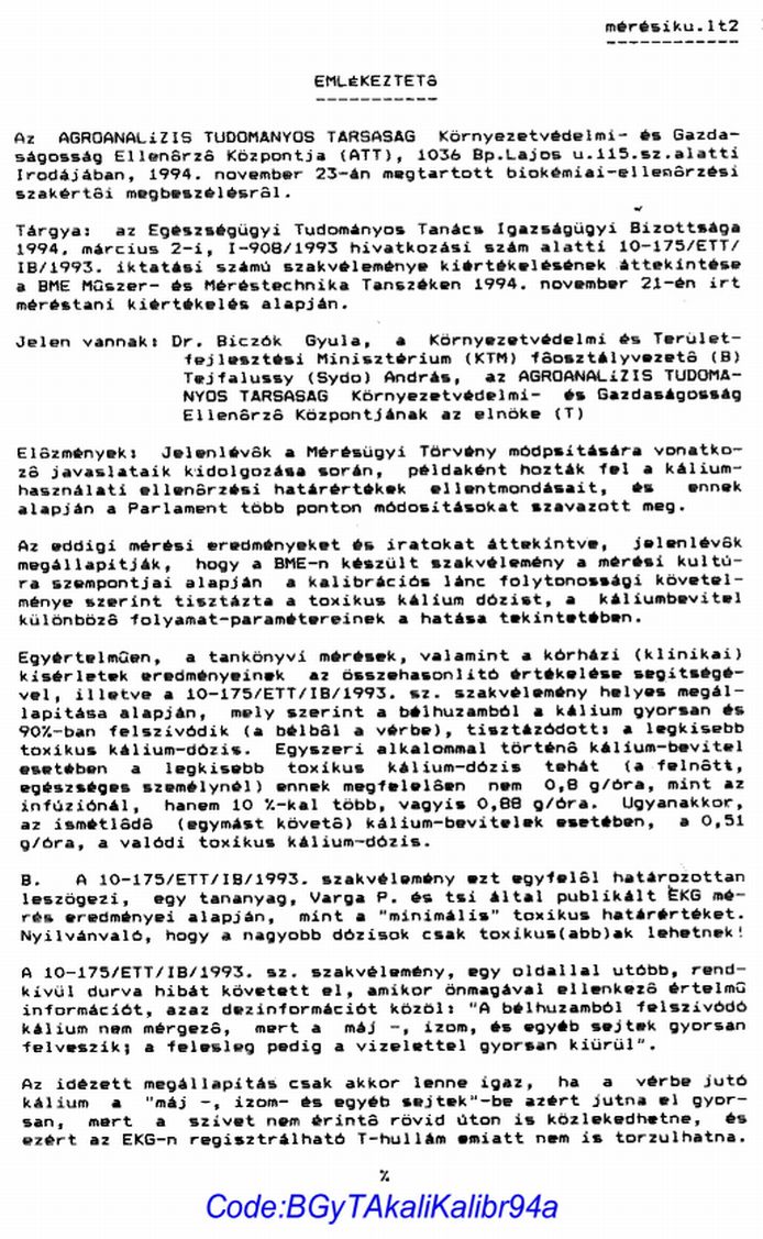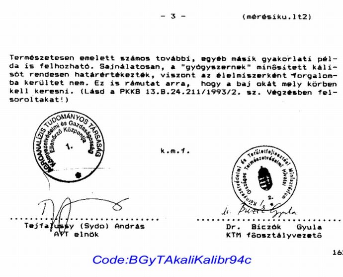 Itt vannak a fenti szakvéleményt aláíró dr. Bíró Györgynek megküldött hivatalos iratok, amelyek bizonyítják, hogy Õ vezette azokat a kálium (REDI-só) ellenõrzõ méréseket, amelyket a fenti rendõrségi szakvéleményében letagadott, hogy azok mérgezést kimutató eredményei ne bizonyíthassák a rendõrség elõtt a kálisó 2-4 grammos napi dózisainál is tapasztalt (hyperkalaemizáló/ mérezõ hatásokat.: