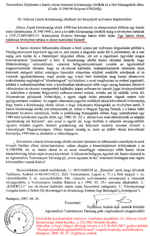 A részletes bizonyíték anyagot lásd a www.AQUANET.fw.hu