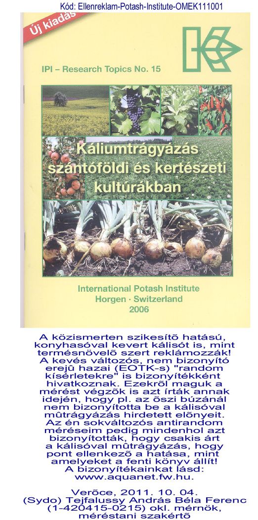 Fõtéma: ELLENREKLÁM AZ INTERNATIONAL POTASH INSTITUTE új kiadványában reklámozott kálisó mûtrágyáknak
