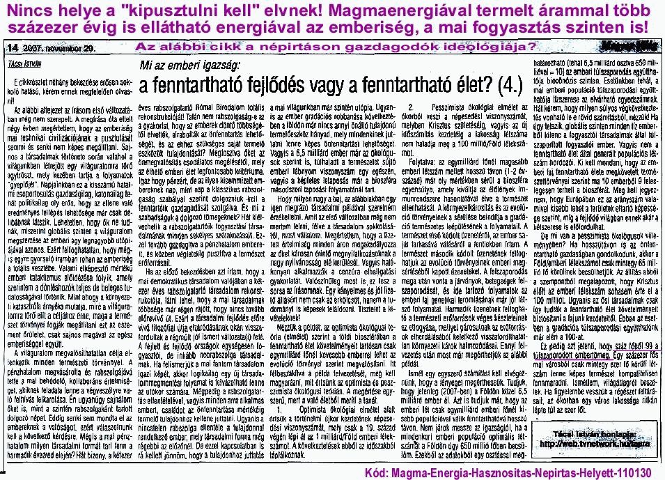 Azért hazudnak, mert az Orbán kormány is (STOP SÓ, Nemzeti sócsökkentõ program) kálisóval etetteti a magyarokat a konyhasó helyett, amikor a nátriumot hiányos pótlás is fokozza a kálisó vese- és szívmérgezõ hatását. Bebeszélik azt, hogy a hullák vérszéruma 1Na : 1K arányában pótoljuk a nátriumot és káliumot, az élõk vérszéruma 30Na : 1K aránya szerinti táplálkozás helyett, mivel ez lerövidíti az életünket, ráadásul ivartalanító hatásó is, vagyis a fokozatos kipusztulásunk arányában eltulajdoníthatják nem csak a nyugdíjalapokba befizetéseinket, de a "kiürült" ingatlanainkat is.