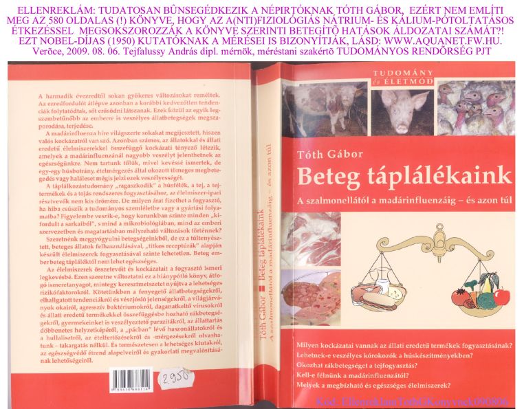 Fõtéma: ELLENREKLÁM, Tóth Gábor: Beteg táplálékaink, a szalmondellától a madárinfluenzáig - és azon túl c. könyvének