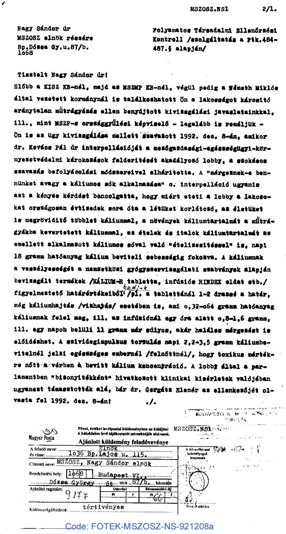 Budapest Lajos u. 115.) kérem, hogy a Magyar