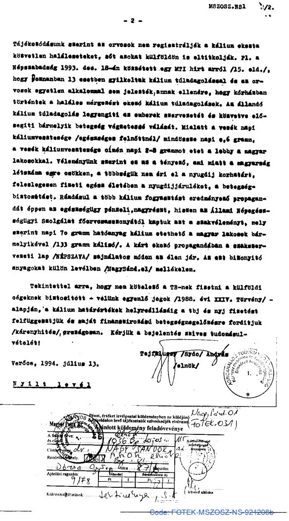 részére. Alulírt Tejfalussy András (2621 Verõce,