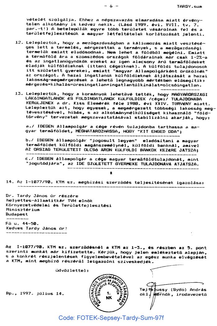 A most életbelépett "FÖLDTÖRVÉNY VASFÜGGÖNY" kizárja a magyarokat a külföldieknek eladott magyar területekrõl, lásd: www.aquanet.fw.hu. Budapest, 2007. 02. 05.