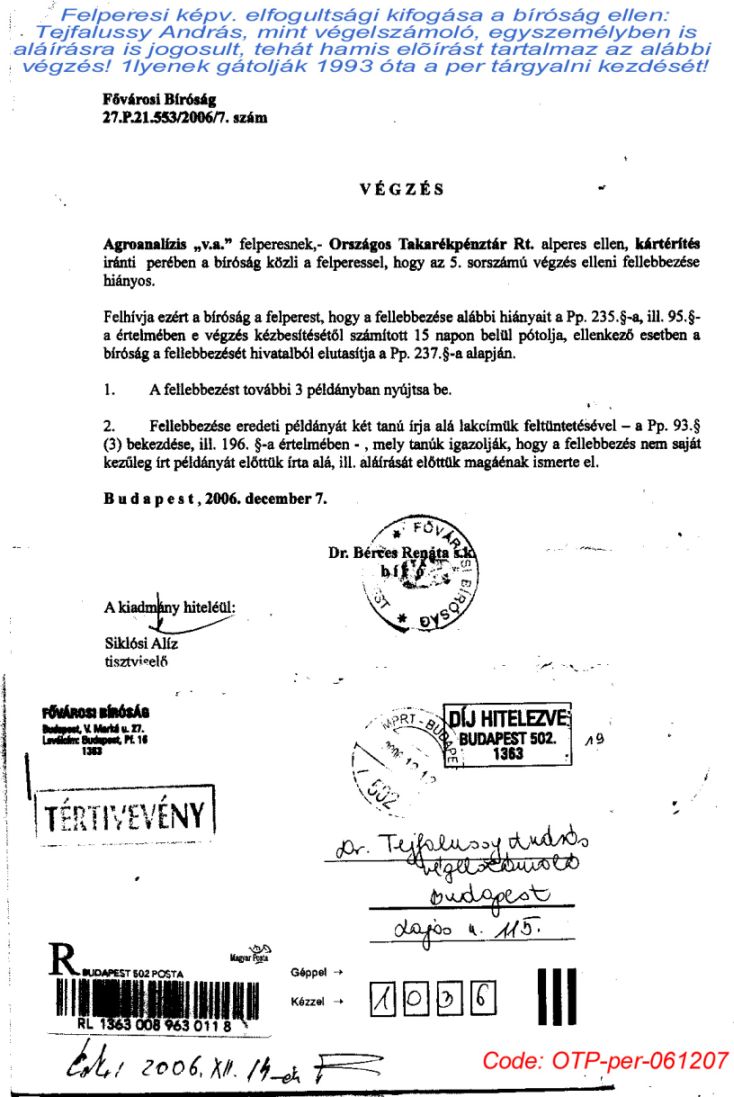 közlését, hogy az OTP elleni perben benyújtott 1996-os