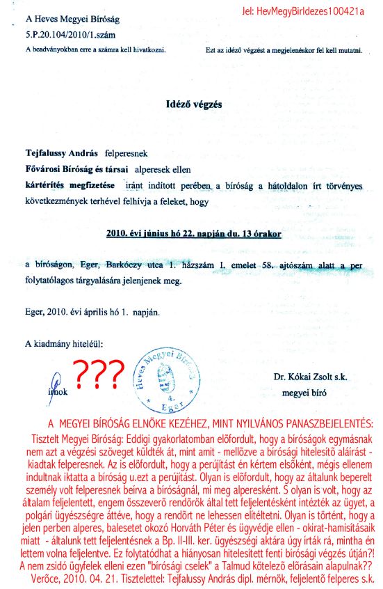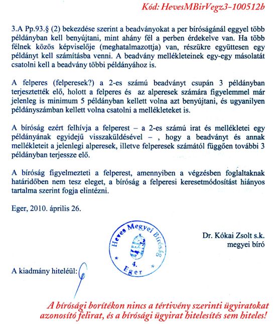 Itt is lehet kattintani a bírósági iratkezelési és azokon alapuló határozat hozatali csalások egyéb bizonyítékaira!