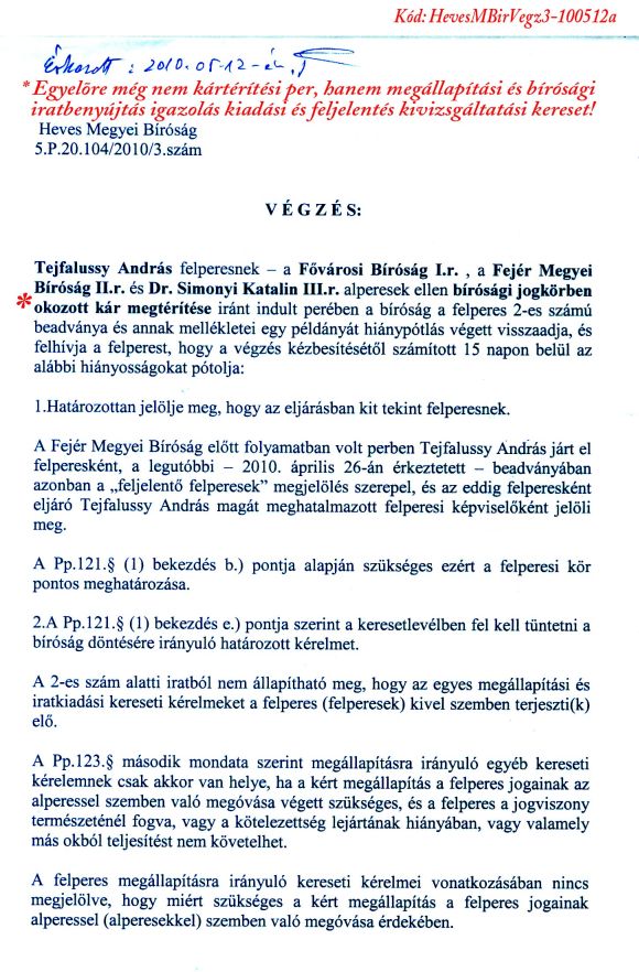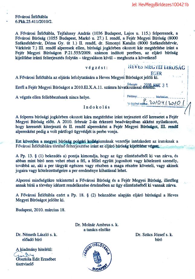 ami tartalmazta a felperesek és a Fejér Megyei Bíróságnál