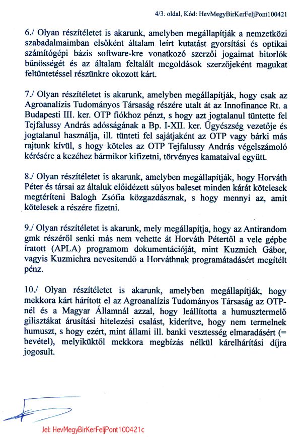 Feljelentõ felperesek kereset pontosítása (2)
