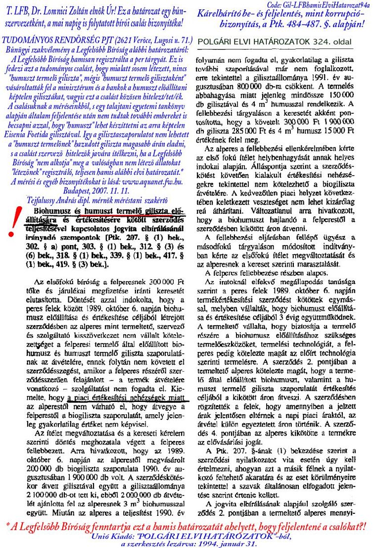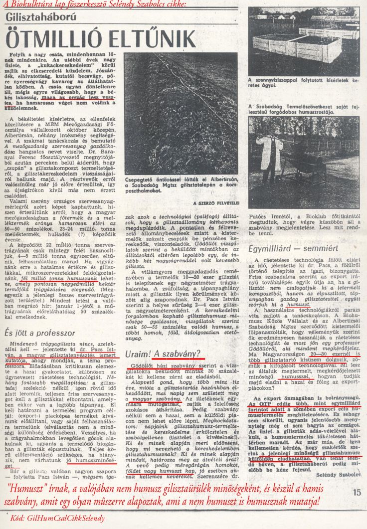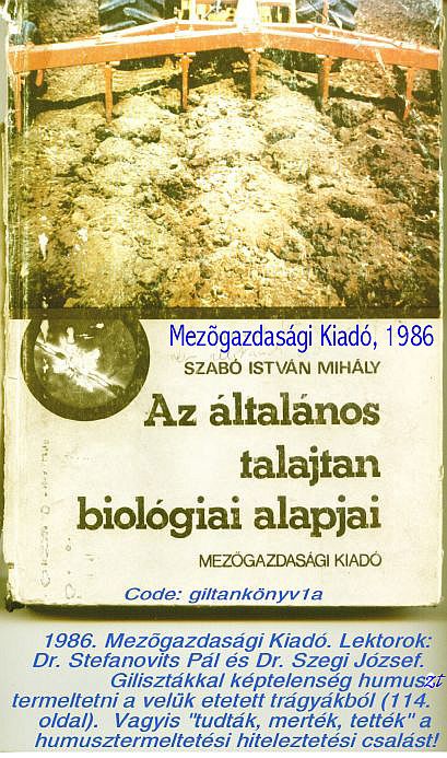 AZ AGRÁREGYETEMEKEN ALAPVETÕ TALAJTANI TANTÉTELKÉNT SZEREPEL, HOGY EGYIK GILISZTÁK EMÉSZTÕRENDSZERÉBEN SEM KELETKEZIK A MEGEVETT SZERVESANYAGOKBÓL SEM HUMUSZ, SEM FÕKOMPONENSEI, ENNEK TUDATÁBAN AKADÉMIAI ÉS EGYETEMI KUTATÓK MAGÁN- ÉS OTP STB. BANKHITELEK TERHÉRE "HUMUSZT TERMELÕ GILISZTA TENYÉSZTÉST" ÉS A GILISZTAÜRÜLÉK "BIOHUMUSZKÉNT" ÁRUSÍTÁSÁT SZERVEZTÉK MEG, ELÕIDÉZVE KB. 50.000 KISGAZDA VAGYONVESZTÉSÉT ÉS EZÁLTAL SOKUKAT ÖNGYILKOSSÁGBA IS HAJSZOLTAK: