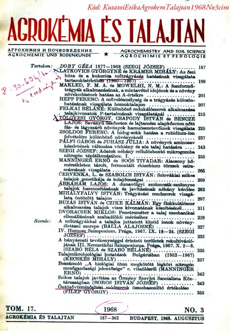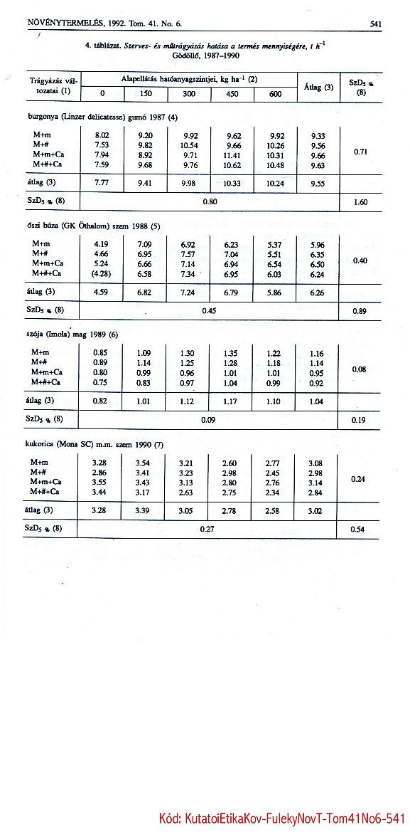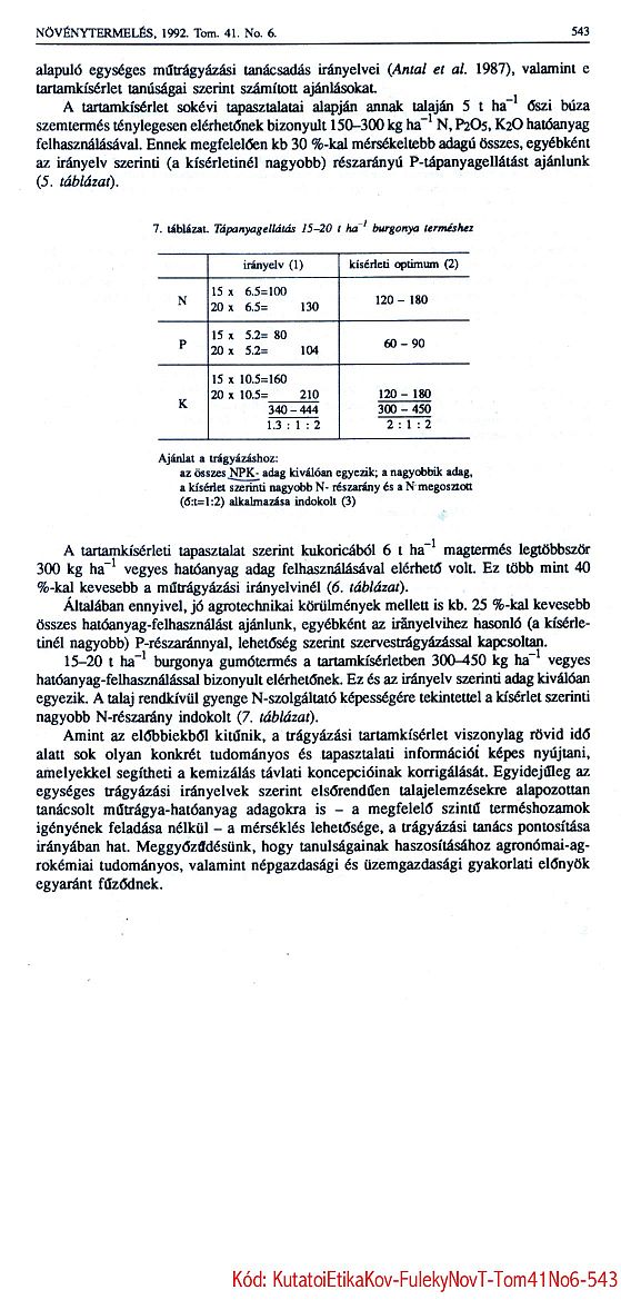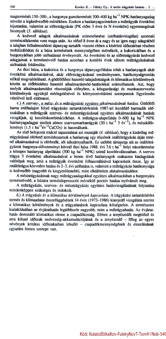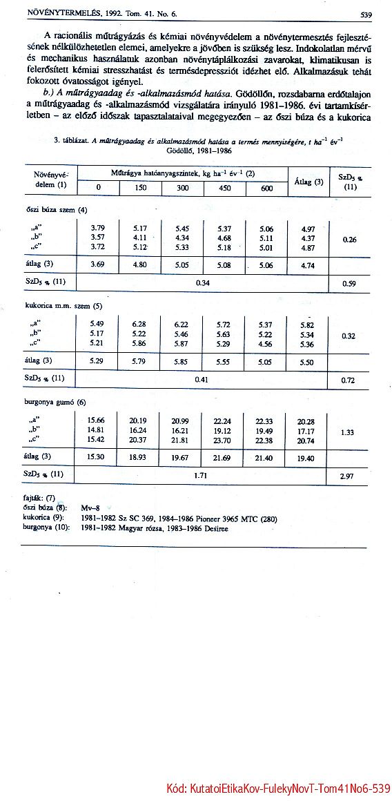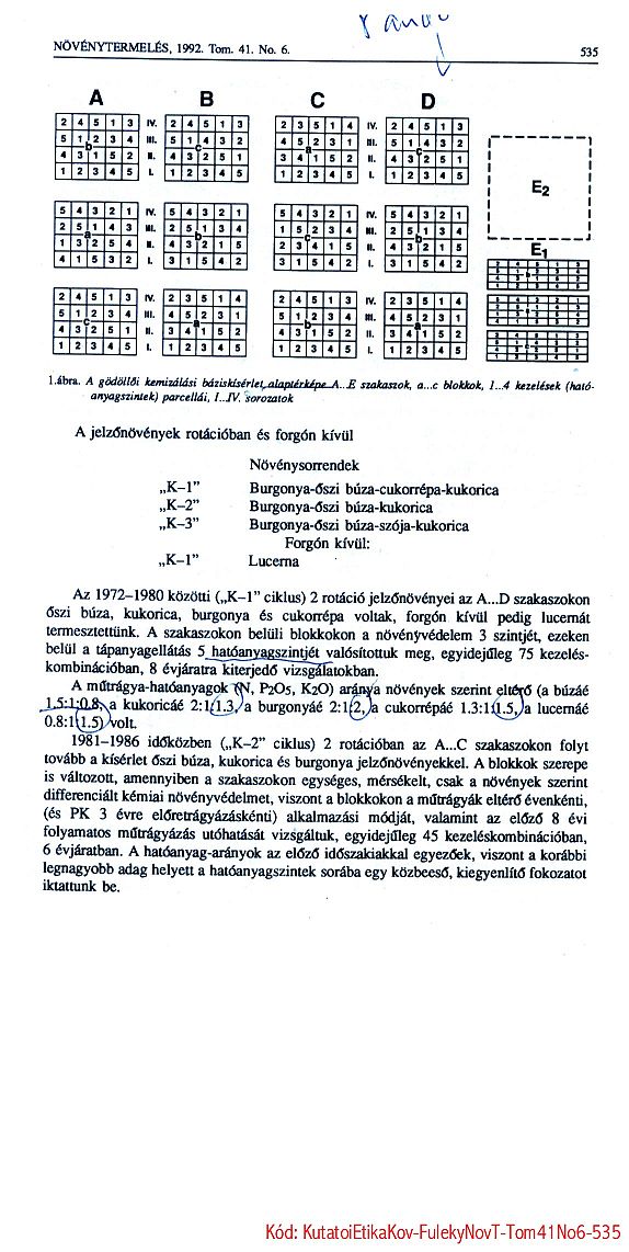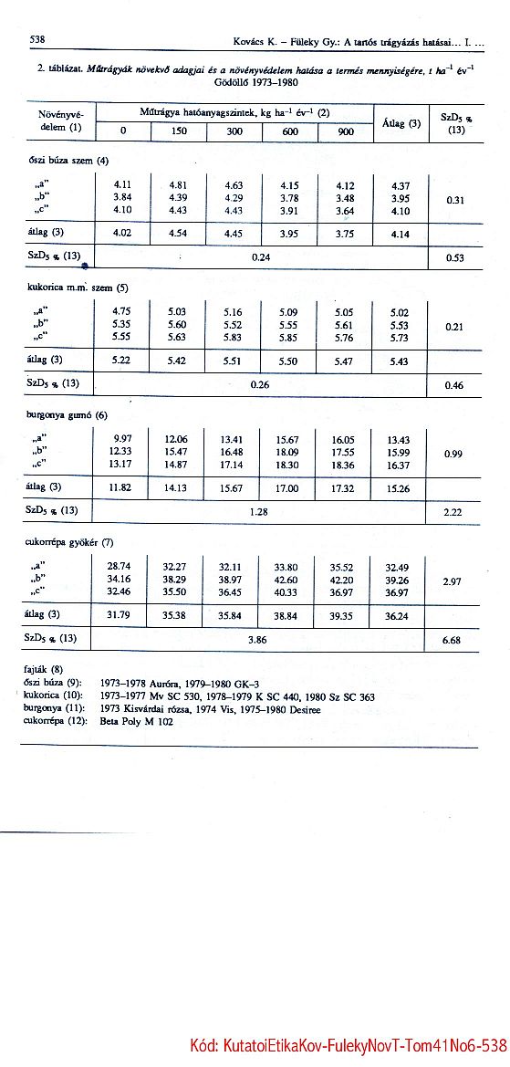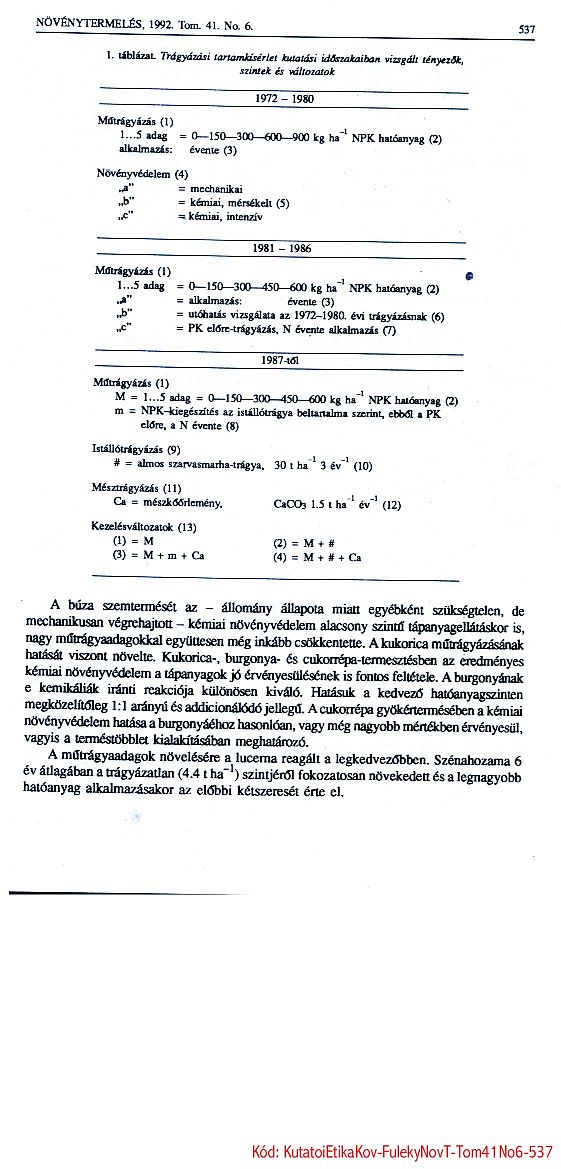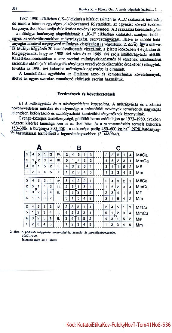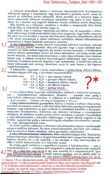A Tejfalussy András szabadalmai szerinti GTS-Antirandom software alkalmazásán alapuló sokváltozós, teljeskombinációs szántóföldi N-P-K-mûtrágya- és tõszám hatás mérések kimutatták foszfor, nitrogén mûtrágya, tõszám és talajinhomogenitás relációban a kálisó mûtrágya nullánál nagyobb dózisai növényalkalmazkodást csökkentõ (betegító) károkozó hatását (növény: Pioneer 3732 US-hibrid kukorica, 1982. Ebes):