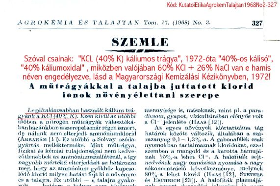 AZ AGRÁREGYETEMEKEN IS TUDJÁK, HOGY A "40%-OS KÁLISÓNAK" NEVEZETT MÛTRÁGYA KONYHASÓVAL IS VAN KEVERVE, DE EZT A HALLGATÓKNAK NEM TANÍTJÁK, S A MÛTRÁGYA FELHASZNÁLÓK TÖBBSÉGE ELÕL ELTITKOLJÁK: