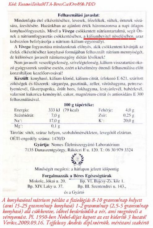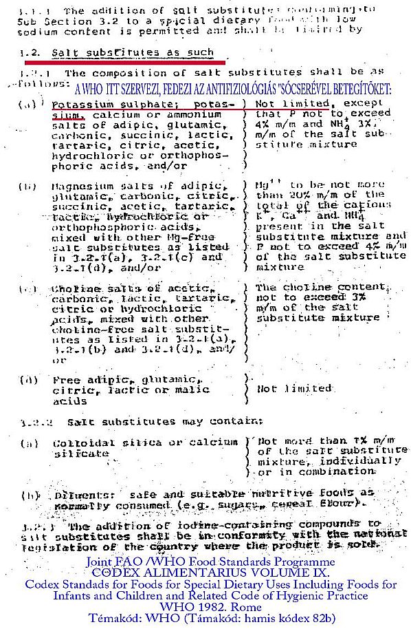 A vérmérgezõ káliumsókkal, azokat a megtévesztõ "só" elnevezéssel "étkezési sóként" alkalmaztatva a kisgyermekeket is mérgeztetik az alábbi hamis WHO kódex hamis szövegére alapozva: