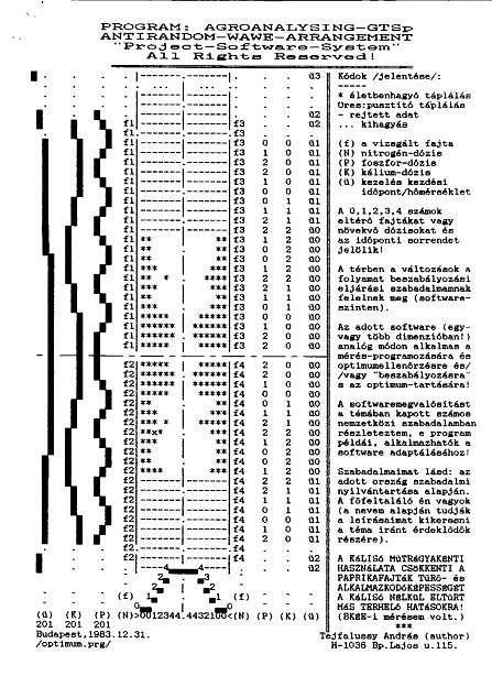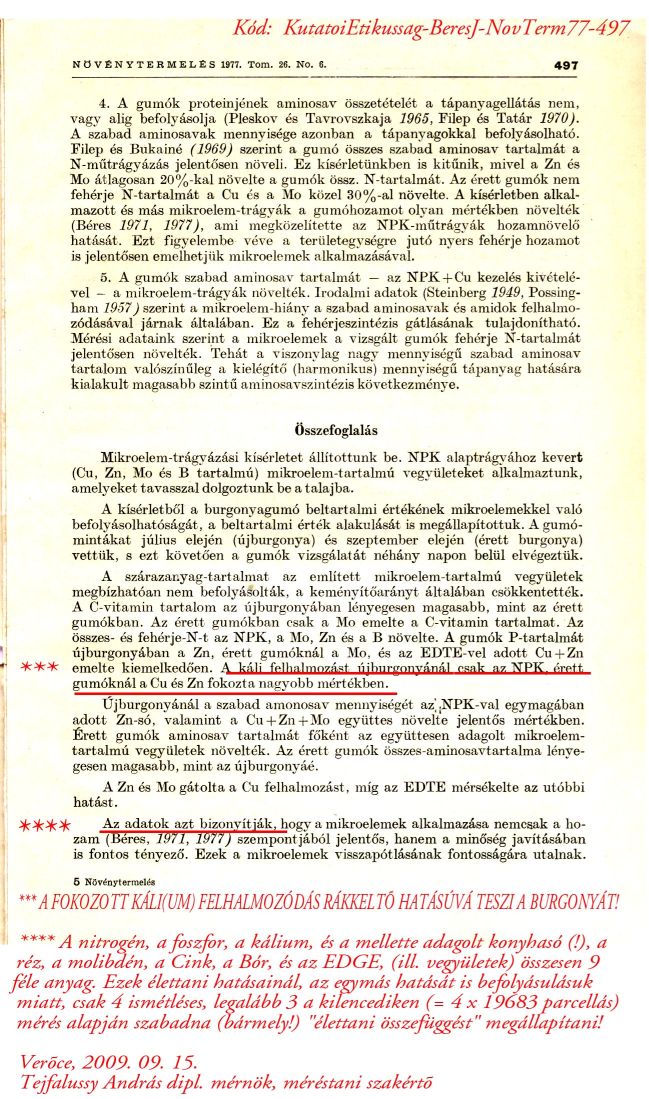 A MAGYAR TUDOMÁNYOS AKADÉMIA RÉSZÉRE A BUDAPESTI KERTÉSZETI ÉS ÉLELMISZERIPARI EGYETEM ZÖLDSÉGTERMESZTÉSI TANSZÉKE ÁLTAL HIVATALBÓL JELENTETT KIPRÓBÁLÁSKOR, a Tejfalussy András által feltalált Antirandom aszálystressz-tolerancia-software fóliaházi alkalmazása is látványosan kimutatta a kálisó nullánál nagyobb dózisai aszálykárt növelõ növénymérgezõ hatását, foszfor, nitrogén mûtrágya és tûzdelési idõpont relációban, egyidejûleg négy különbözõ paprikafajtánál is (1983.)