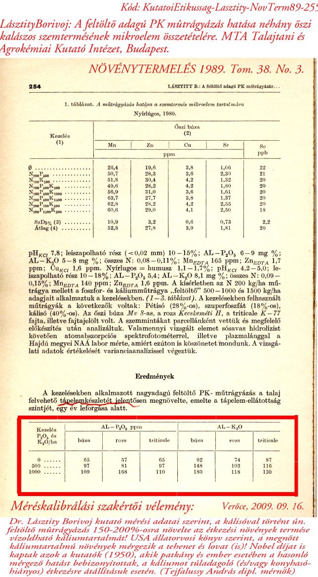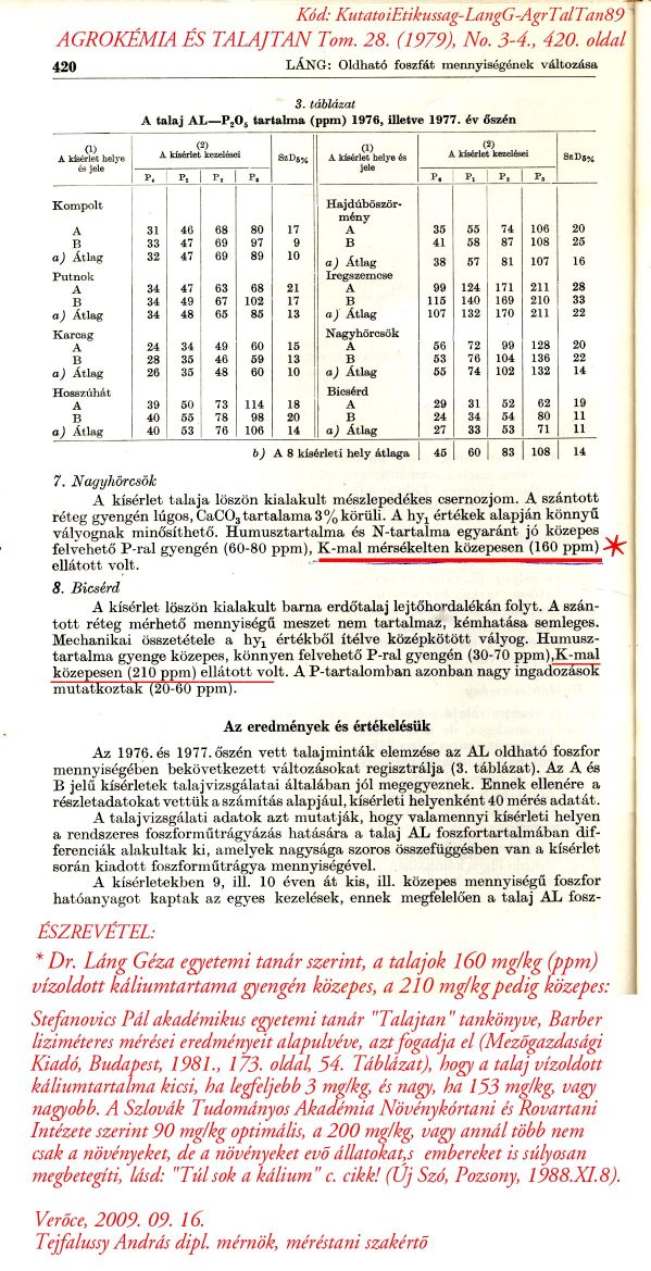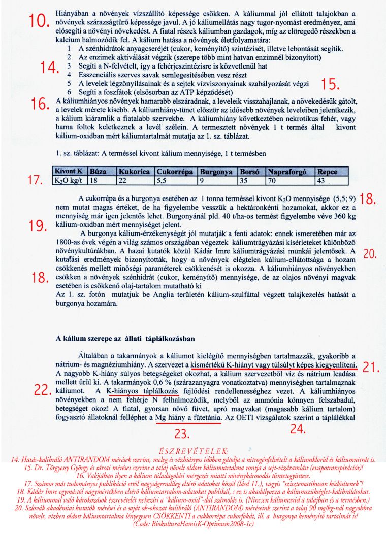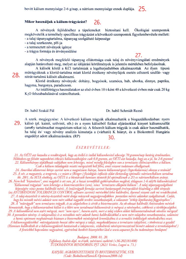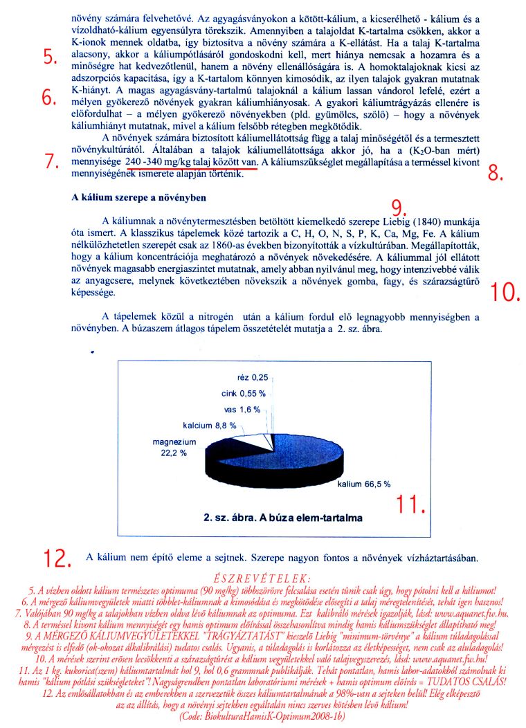 Miért publikálta a Biolkultúra lap a (200-280 mg/kg) kálium optimum értékre alapozott cikket a (90 mg/kg) optimum értéket bizonyító mérési eredmények és a kálium túladagolás élettani kárai tudatos elhallgatásával, eltitkolásával, a kálium mérgezõ hatásainak a szembehazudásával? KÖZÉRDEKÛ ADATOKAT PUBLIKÁLGATNAK HAMISAN!