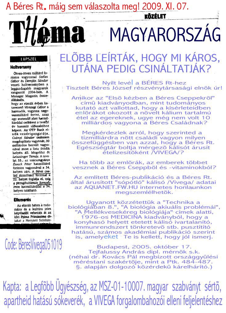 MIUTÁN MEGKAPTÁK TEJFALUSSY ANDRÁS KORREKCIÓS ÉSZREVÉTELEIT ÉS AZ AZOKAT ALÁTÁMASZTÓ TUDOMÁNYOS MÉRÉSEKET BEMUTATÓ DOKUMENTÁCIÓKAT, A BIOKULTÚRA LAP SZERKESZTÕI LEKÖZÖLTÉK A FENTI CIKKET. A MÉRGEZÕ KÁLISÓ FELHASZNÁLÁST SZORGALMAZÓ CIKK CÍM AZ EREDETINÉL IS HAMISABB, S FÉLREVEZETÕ HATÁSÚ DEKORÁCIÓKKAL IS KIEGÉSZÍTETTÉK A CIKK-TERVEZET EREDETI SZÖVEGÉT.