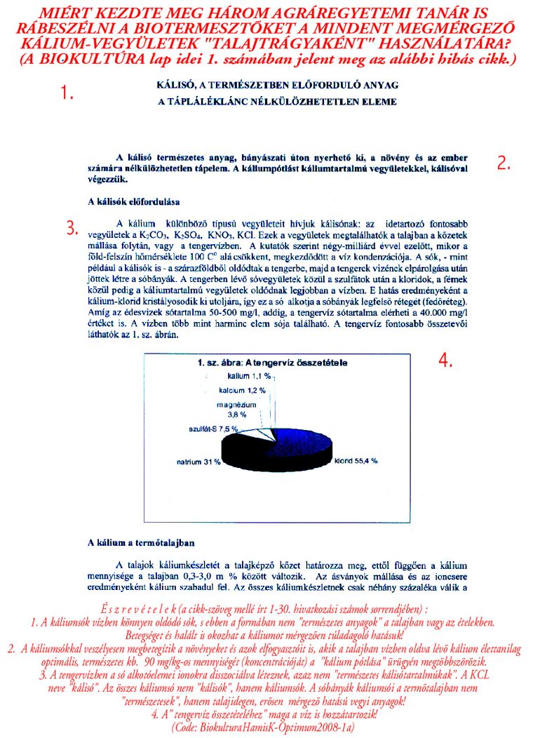 A TENGERVÍZ LEPÁRLÁSBÓL VAGY A SÓBÁNYÁKBÓL SZÁRMAZÓ, VÍZBEN OLDÓDÓ KÁLIUMSÓK EGYIKE SEM "TERMÉSZETES ANYAG" A TERMÕTALAJOKBAN. MIÉRT PRÓBÁLJA ELHITETNI A BIOKULTÚRA EGYESÜLET LAPJA ENNEK ELLENKEZÕJÉT A TERMELÕKKEL?