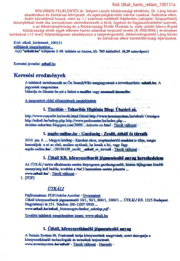I./ Gyógytápszerként árusított halálosan