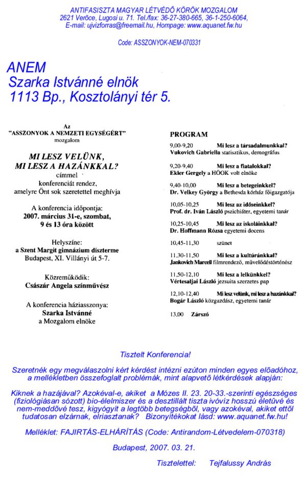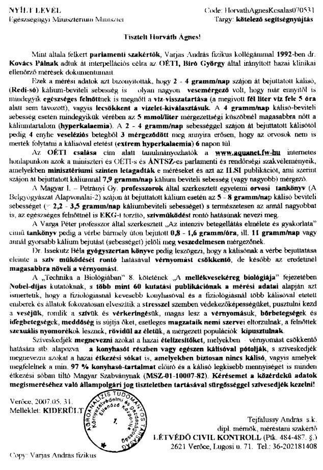 BIZONYÍTÉKOKAT A WWW.AQUANET.FW.HU TUDOMÁNYOS
