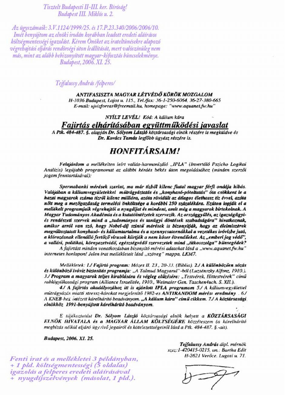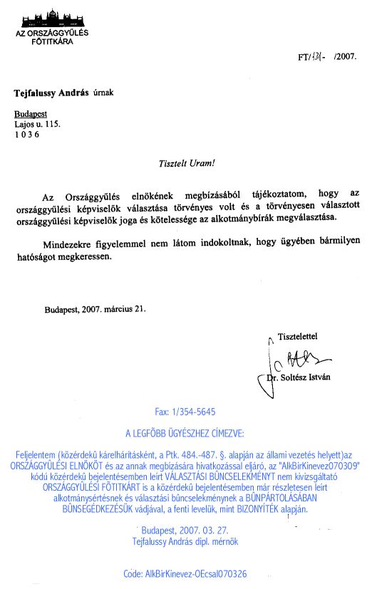 Court, to the Court of the Capital: Budapest, and to the Main State-Attorney
