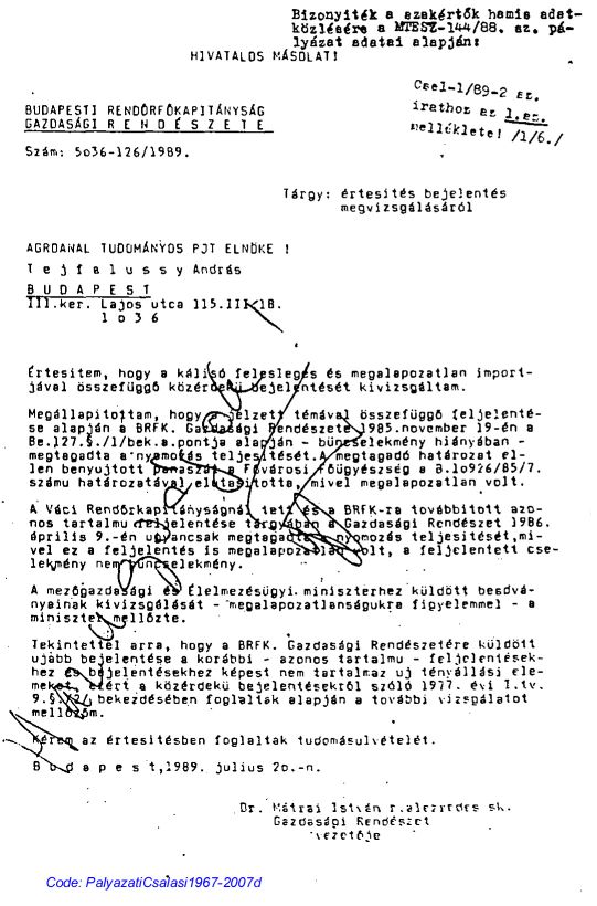 Tejfalussy András további méréstani szakértõi szakvéleménye az ok-okozat kalibráló mérések alapján: