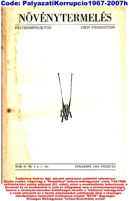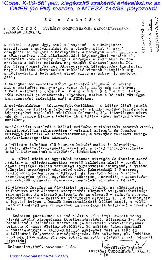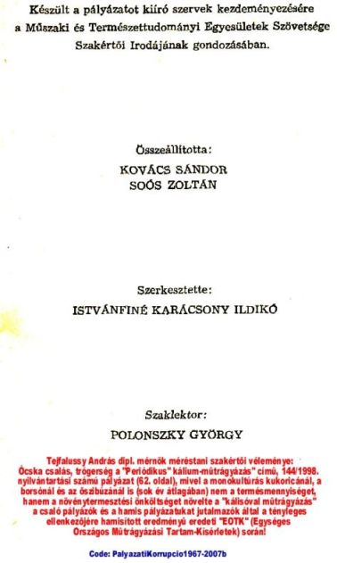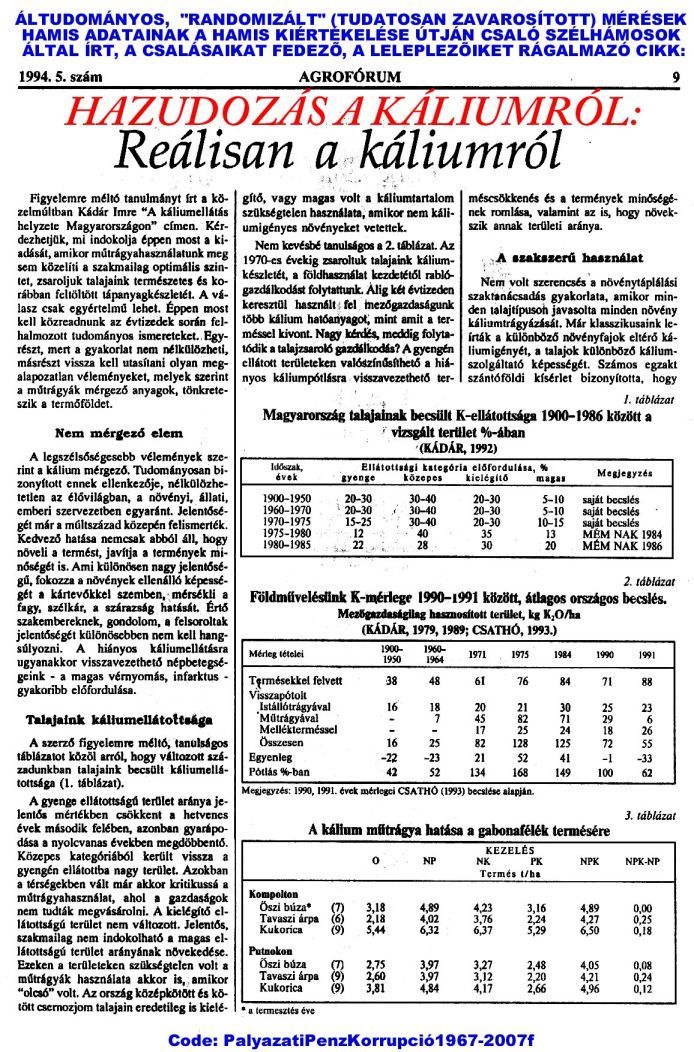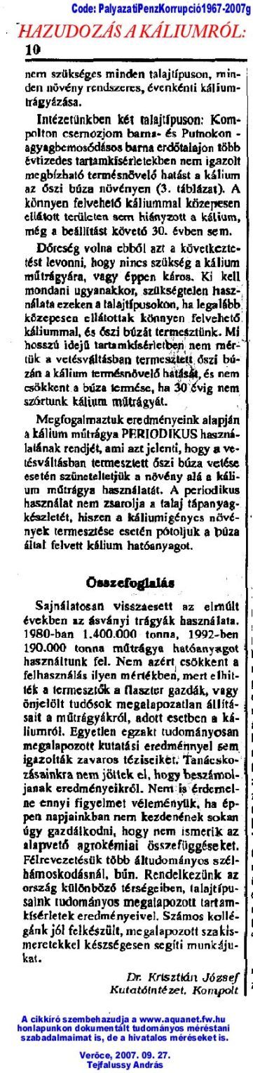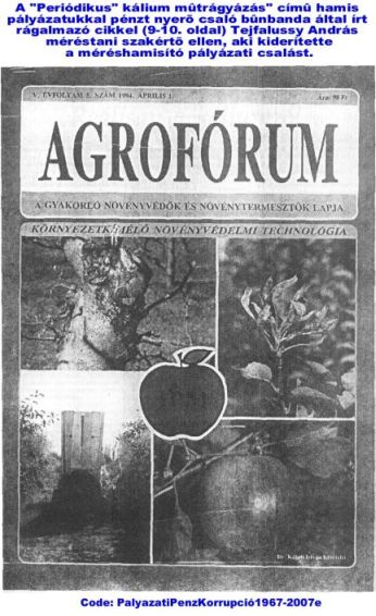 AZ AGROANALÍZIS TUDOMÁNYOS TÁRSASÁG A TEJFALUSSY ANDRÁS ÁLTAL FELTALÁLT ANTIRANDOM OK-OKOZAT KALIBRÁLÓ MÉRÉSI SOFTWARE ALKALMAZÁSÁVAL ELDÖNTÖTTE, HOGY AZ EGYMÁSSAL IS "TUDOMÁNYOSAN VITATKOZÓK" KÖZÜL AZOK A CSALÓK, AKIK A HAZAI GAZDÁKKAL "KÁLIUM-MÛTRÁGYÁKAT" VÁSÁROLTATNAK A HAZAI TERMÕTALAJOK 1-6%-OS TERMÉSZETES KÁLIUMTARTALMÁNAK A HASZNOSULÁSA AKADÁLYOZÁSÁRA: