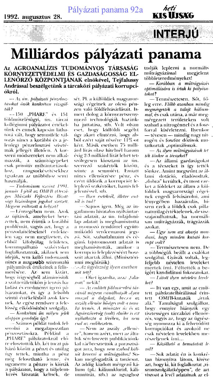 Fõtéma: Általános volt a pályázati pénz elosztási korrupció az Európai Unióba belépésünk elõtt is!