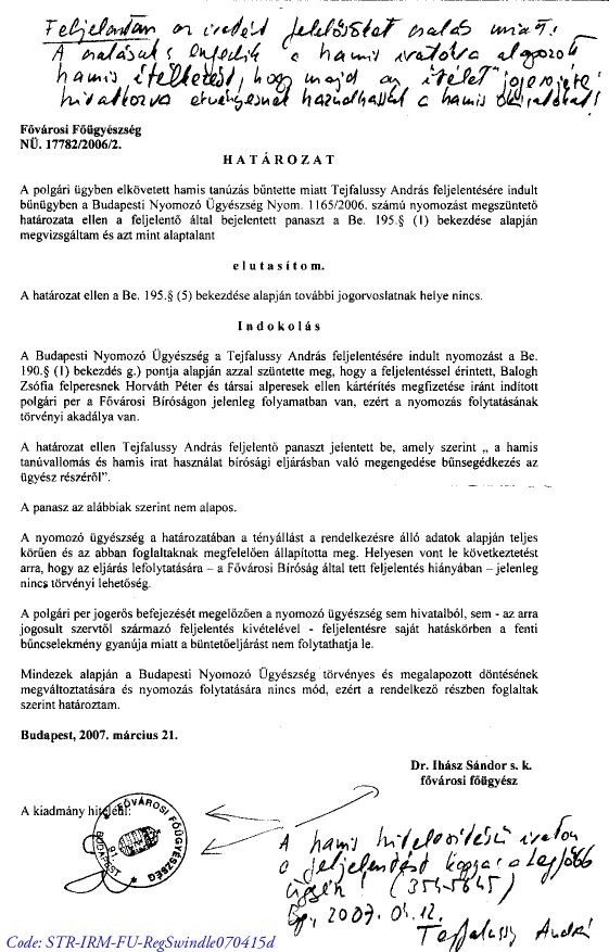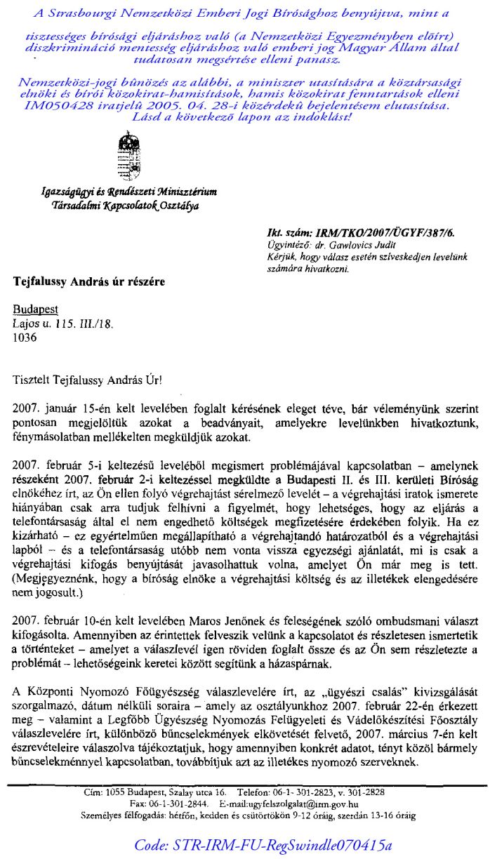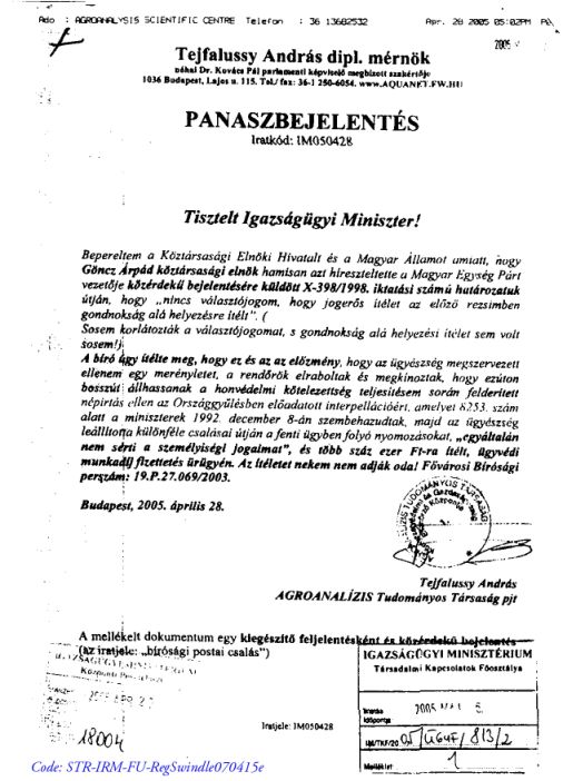 Itt kattinthat az igazazságügyi miniszterhez a bírósági regisztrációs csalásról benyújtott elõzõ feljelentésre