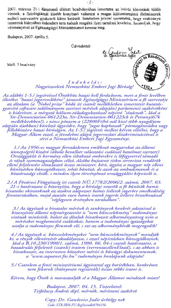Itt kattinthat a fenti beadvány mellékleteként postán megküldött, elõzõleg faxon benyújtott (DENUNTIATION TO STRASBOURG) beadványra