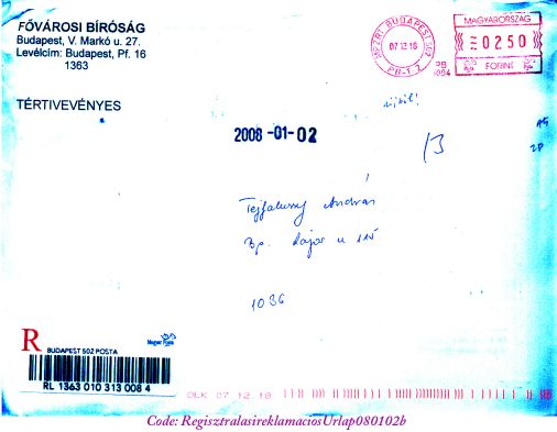 borítékokon szinte soha sincs feltüntetve a bírósági