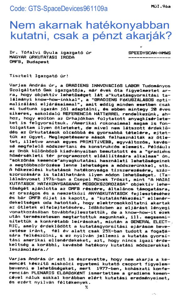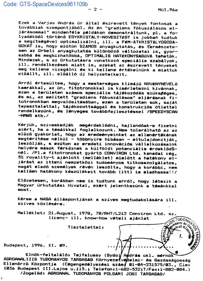 A GTS-ANTIRANDOM SOFTWARE SYSTEM ÉS AZ AZT ALKALMAZÓ OK-OKOZAT KALIBRÁLÓ MÉRÕ LÉTESÍTMÉNYEK TERVEI AZ ÜRKUTATÁSBAN IS MAGYARORSZÁG VEZETÕ SZEREPÉT BIZTOSÍTHATNÁK TEJFALUSSY ANDRÁS SZERZÕI JOGAI ALAPJÁN. TEJFALUSSY ANDRÁS SZERZÕI JOGAI E E SOFTWARE-K ÉS LÉTESÍTMÉNY TERVEK NEMZETKÖZI SZABADALMI BEJELENTÉSEIBEN PUBLIKÁLÁSI ELSÕBBSÉGGEL A SZABADALMAK LEJÁRTA UTÁN IS FENNÁLLNAK!