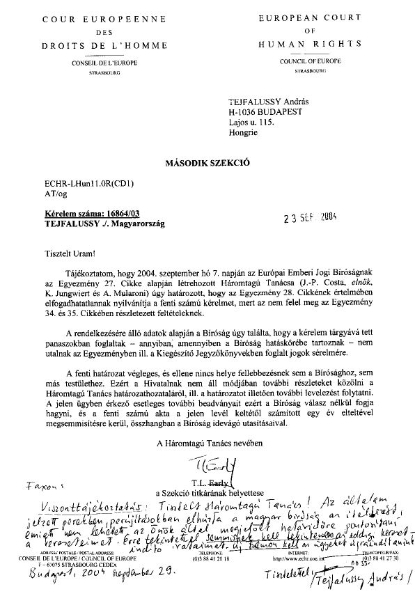 Melléklet a Strasbourgi Nemzetközi Bírósághoz címzett (Code: STR-Solyom-070123) keresethez: