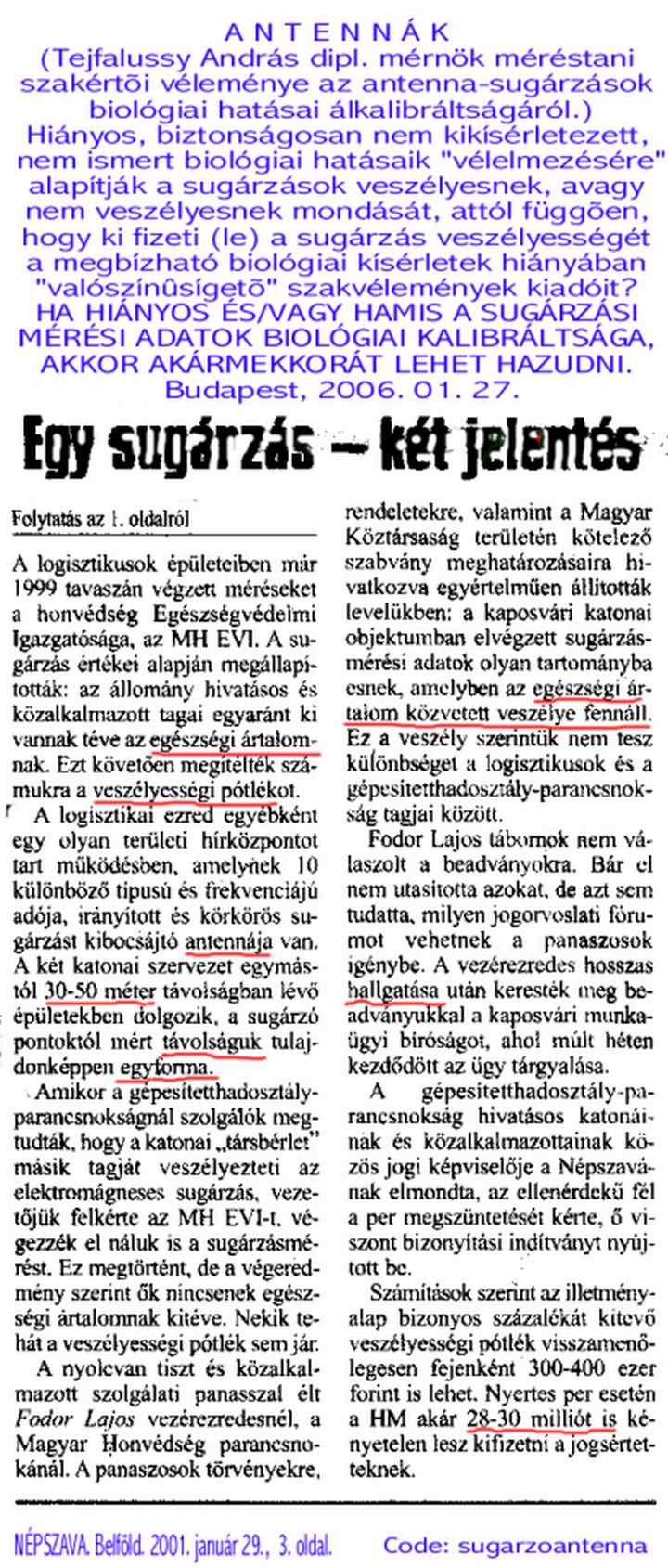 Téma:: BIOLÓGIAI SZEMPONTBÓL ÁLKALIBRÁLT ANTENNA SUGÁRZÁSI MÉRÉSEK