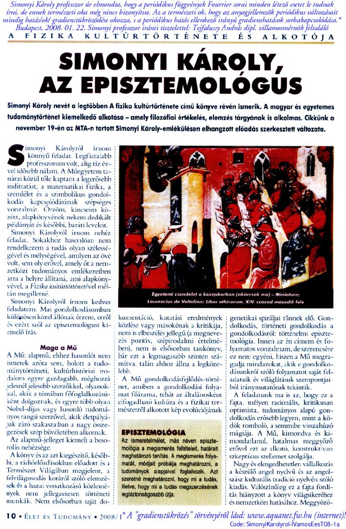 Fõtéma: Tejfalussy András kiderítette a Fourrier-analízis általános alkalmazhatóságának Simonyi Károly professzor úr által is keresett természeti okát?