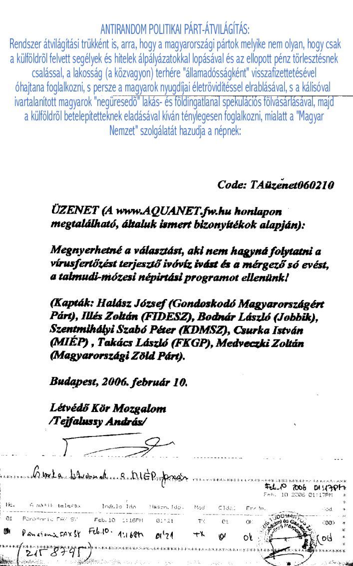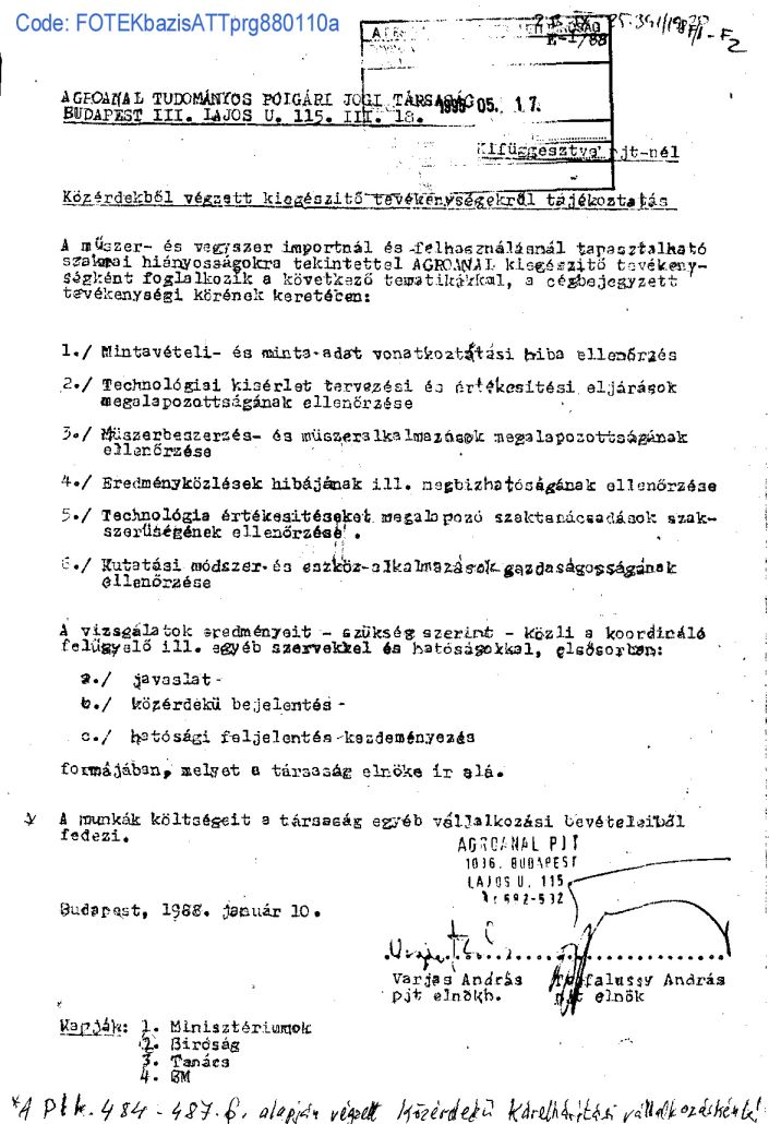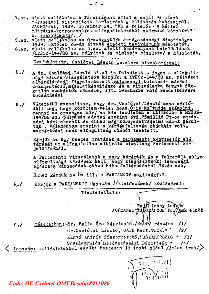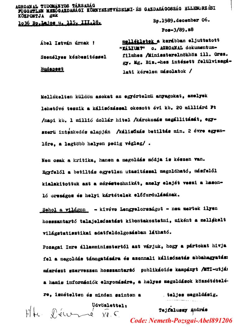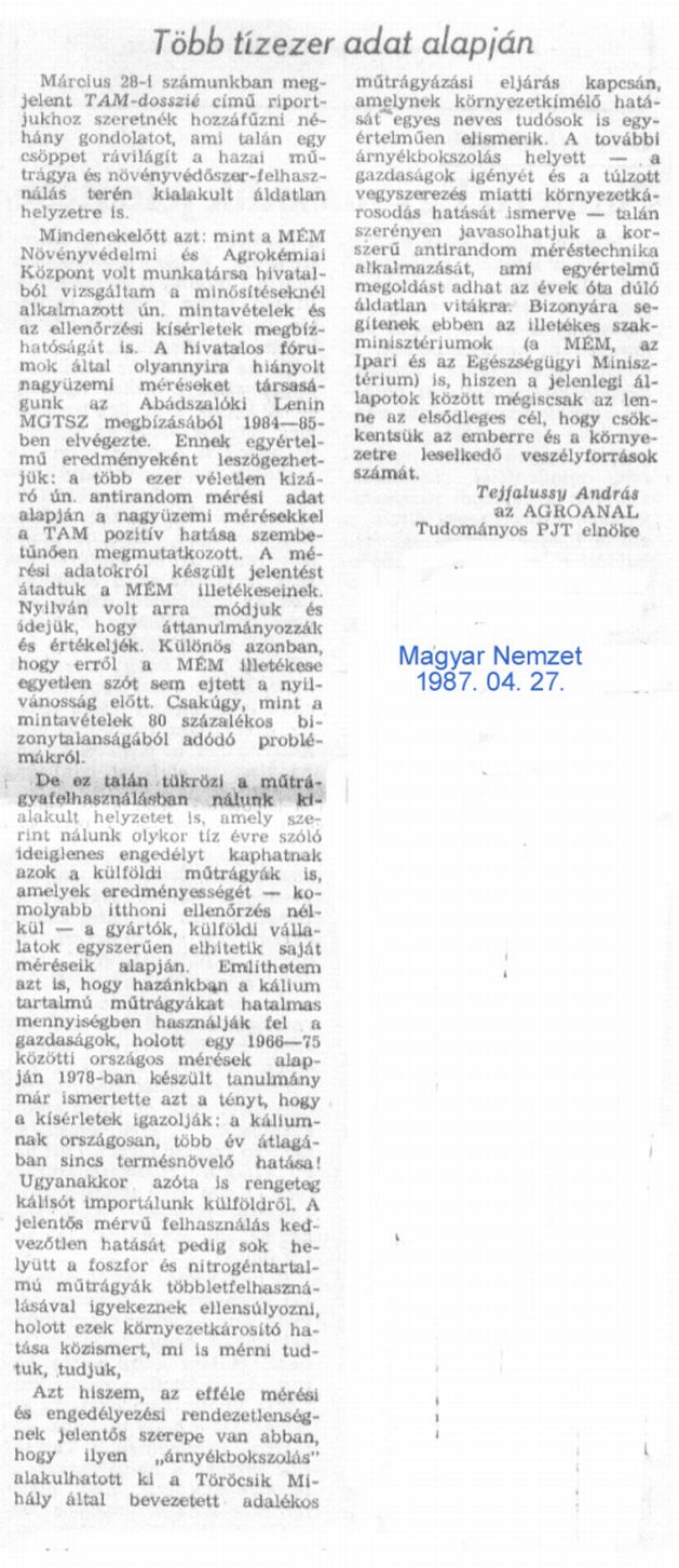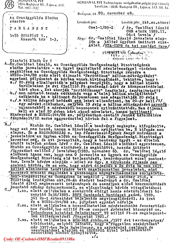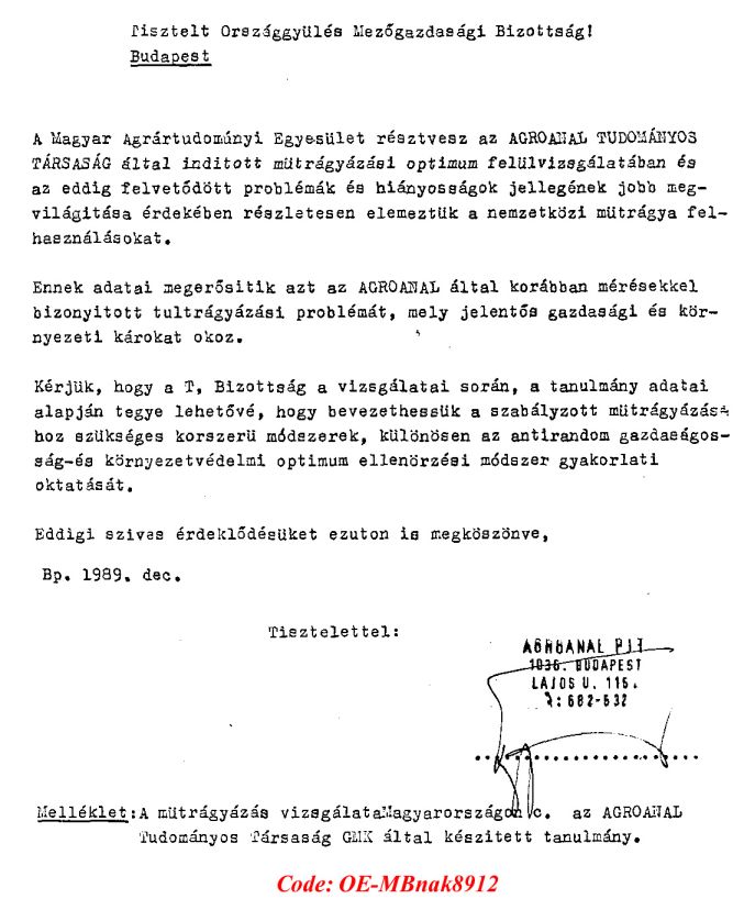 Kárelhárítási célból Agroanalízis Tudományos Társaság fellépései a biológiai-vegyi fegyverekkel fajirtó ingatlanrabló terroristák és ezek bûnsegédei által tudományos csalásokra alapozott káliummûtrágyázás magyarországi folytatása és folytatói ellen.