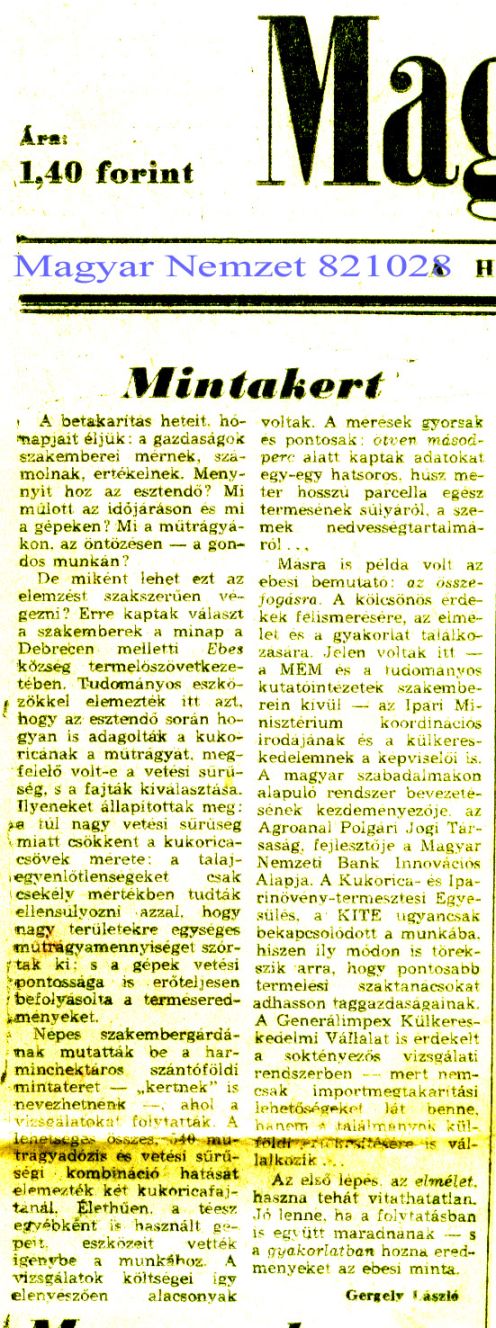 A káliumvegyületekkel mûtrágyázás talajvíz-mérgezõ és növénymérgezõ hatását bizonyító mérések